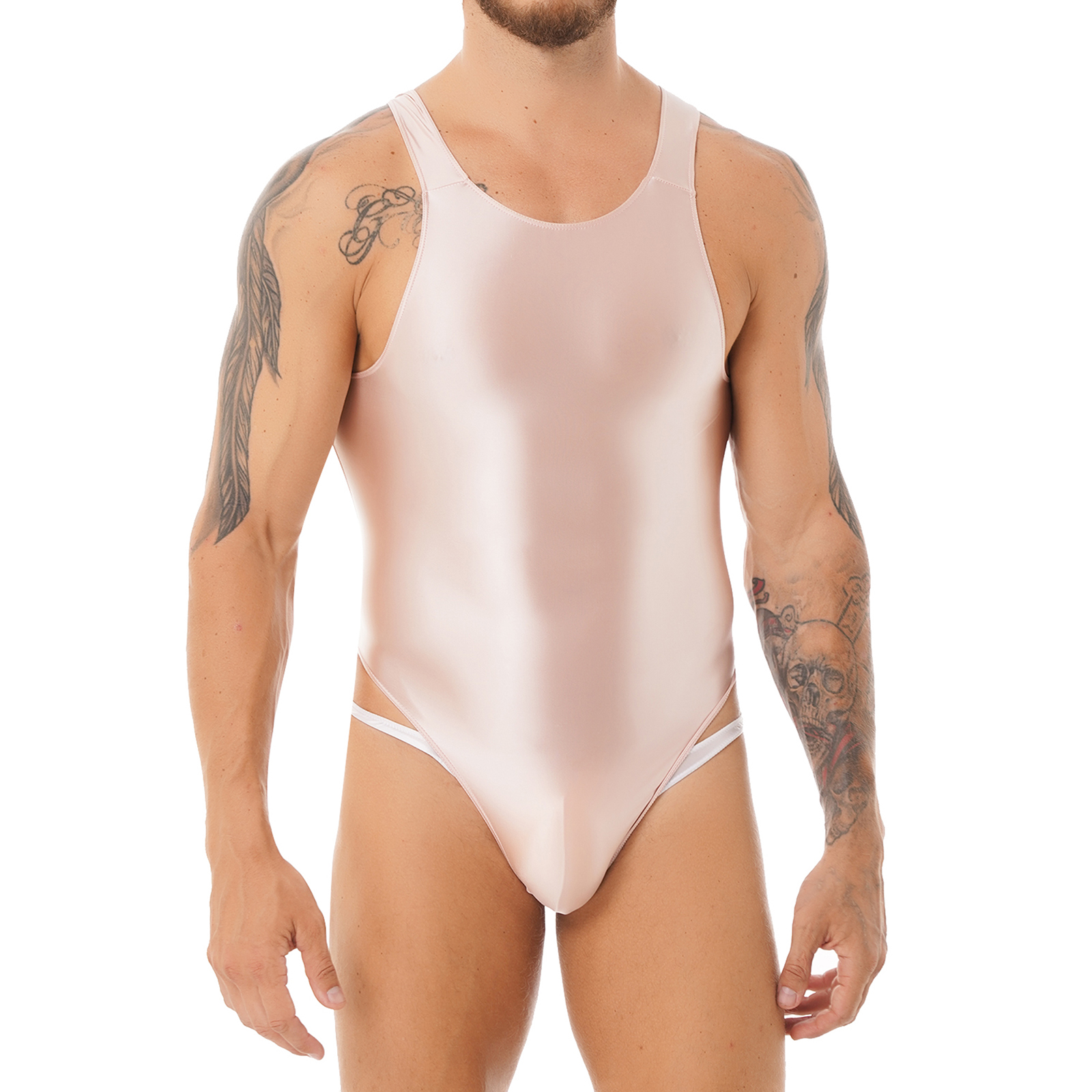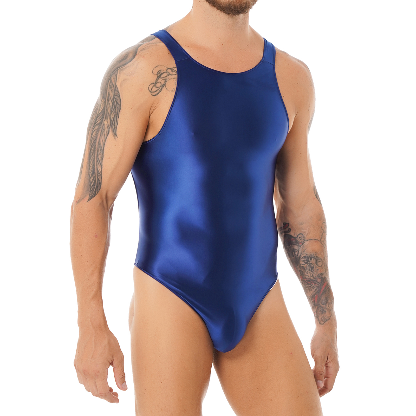 Мужской однотонный глянцевый Цельный купальник с вырезом на спине, купальник-трико.