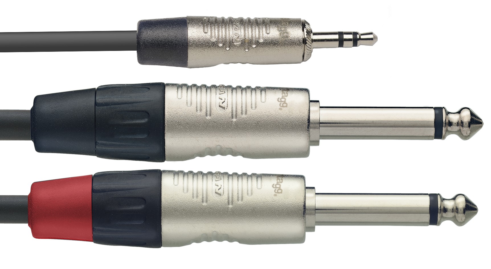 STAGG NYC3/MPS2PR - профессиональный аудиокабель 2 х Mono Jack 6,3 мм - 1 Stereo Mini Jack 3.5 мм. Кабель оснащен профессиональными металлическими разъемами Neutrik. Толщина кабеля - 6 мм, длина кабеля составляет 3 метра.