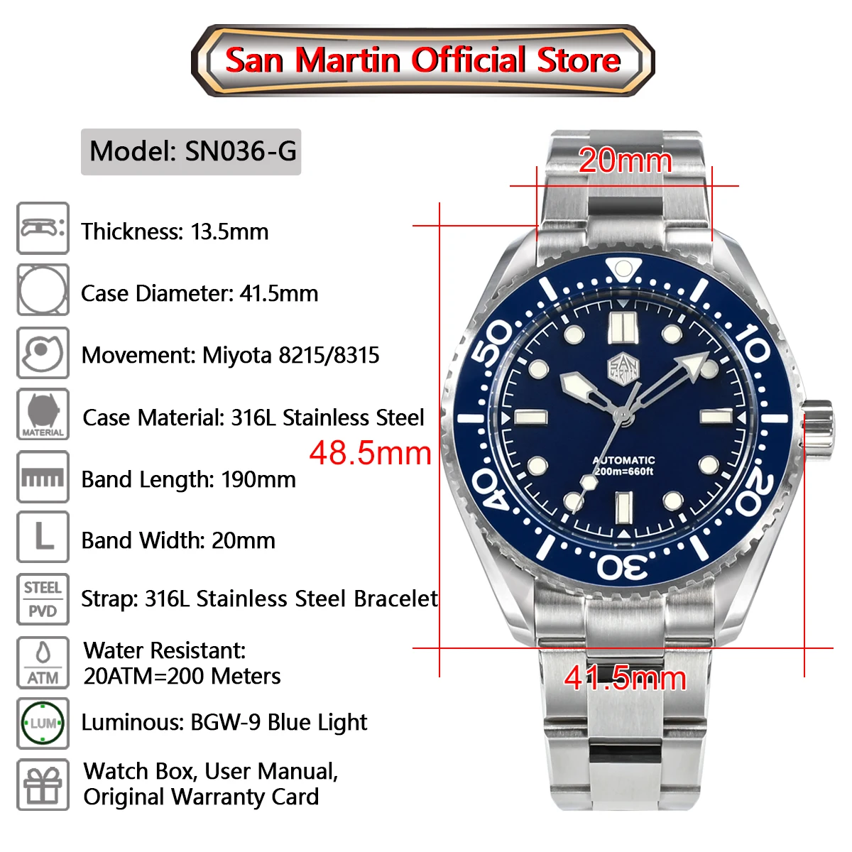 Застежка: новая складная застежка с безопасной пряжкой из нержавеющей стали 316L, с 3D логотипом San Martin