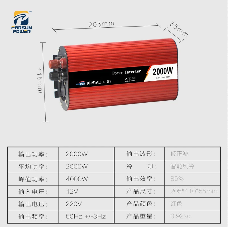 2000W DC12V/24V дo AC 110V/220 В Модифицированная синус волны инвертор красного цвета ЖК-дисплей Дисплей трансформатор преобразователь солнечной инвертор