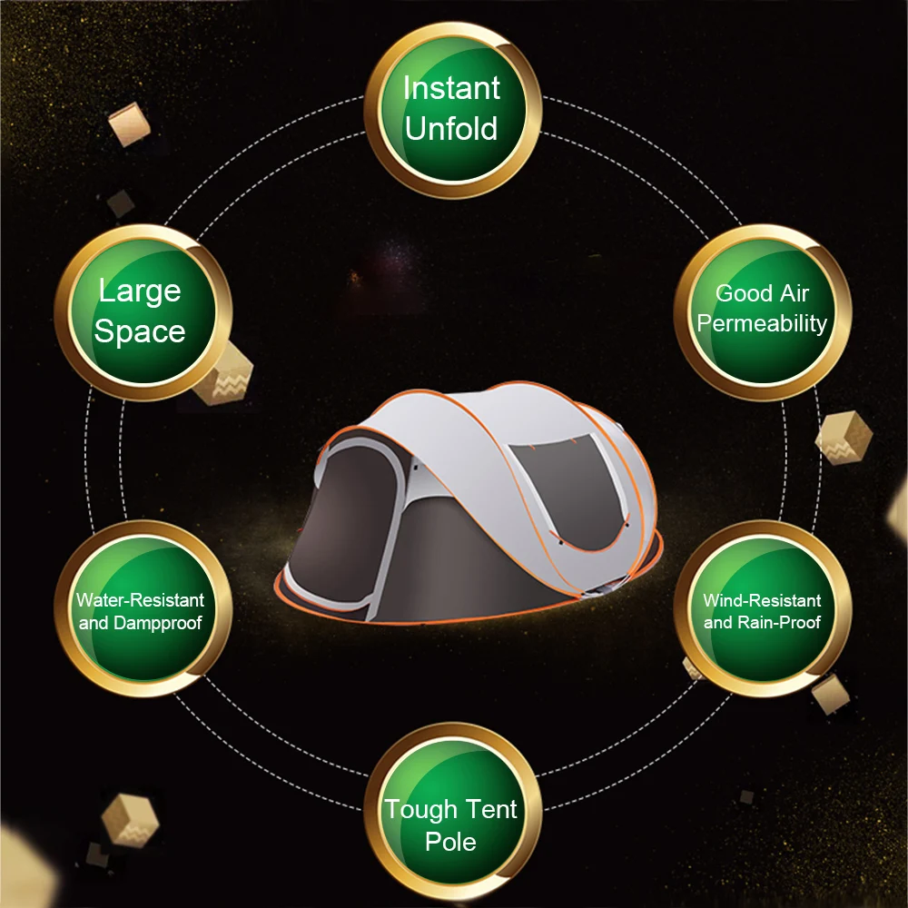 Эта Наружная палатка предназначена для быстрой и легкой установки. Просто киньте его и он может автоматически разворачиваться за 1 секунду. Так что у вас будет больше времени, чтобы наслаждаться спортом на открытом воздухе.