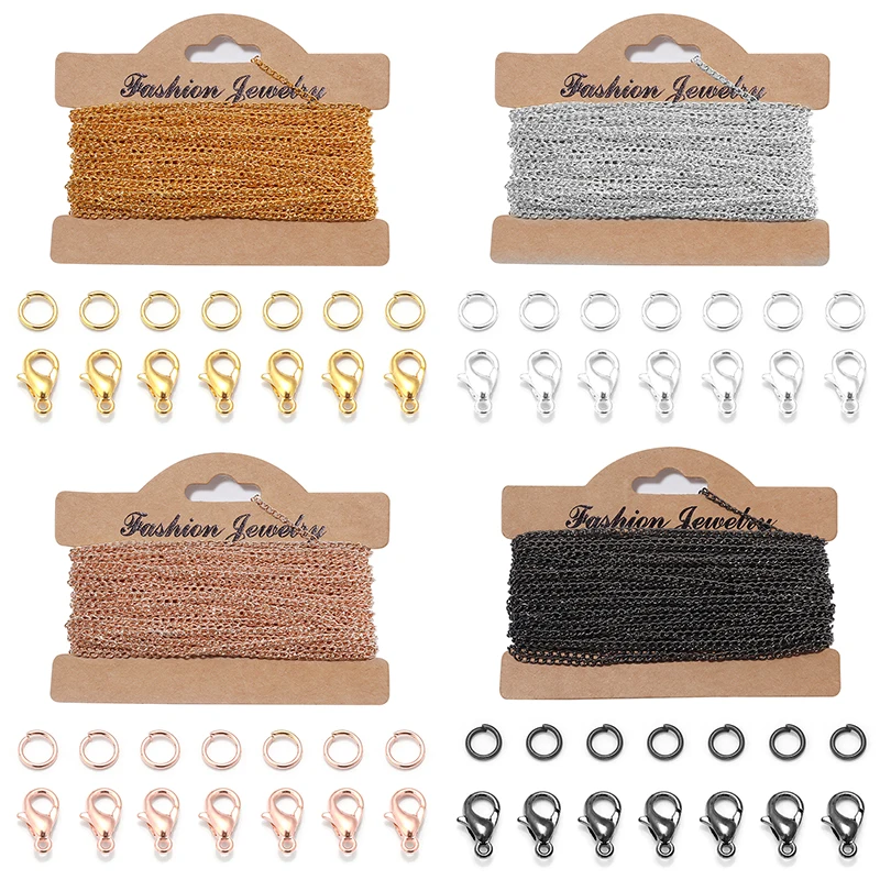 3m/Set Tail Extender Chain Link Chains With Jump Rings Lobster Clasps Jewelry Making Set Necklace Chains DIY Necklace Materials