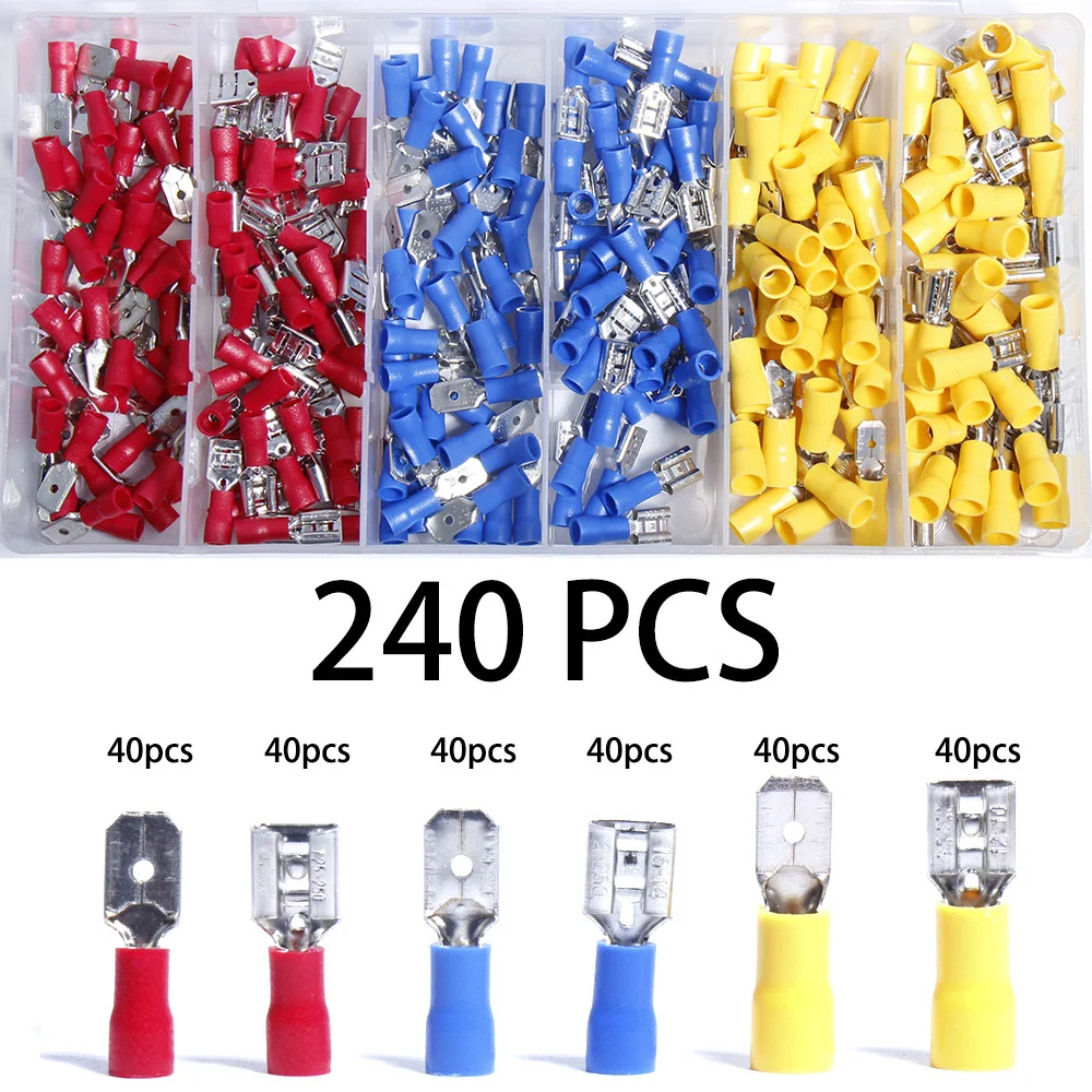 Клеммы, соединители, электрические обжимные кольца, комбинированный наконечник, кабель, провод, автомобильная полностью изолированная вилка, ассортимент, набор, лопата, кольцо u-типа