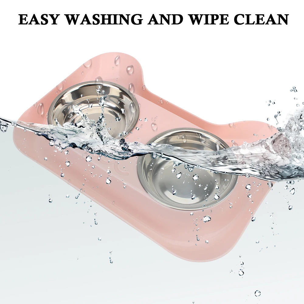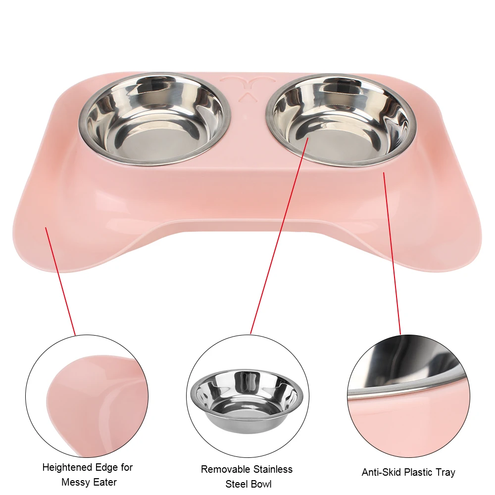 Две миски для домашних животных из нержавеющей стали, чтобы получить корм для собак и воду, помещенную отдельно, легко снимать или мыть в любое время.