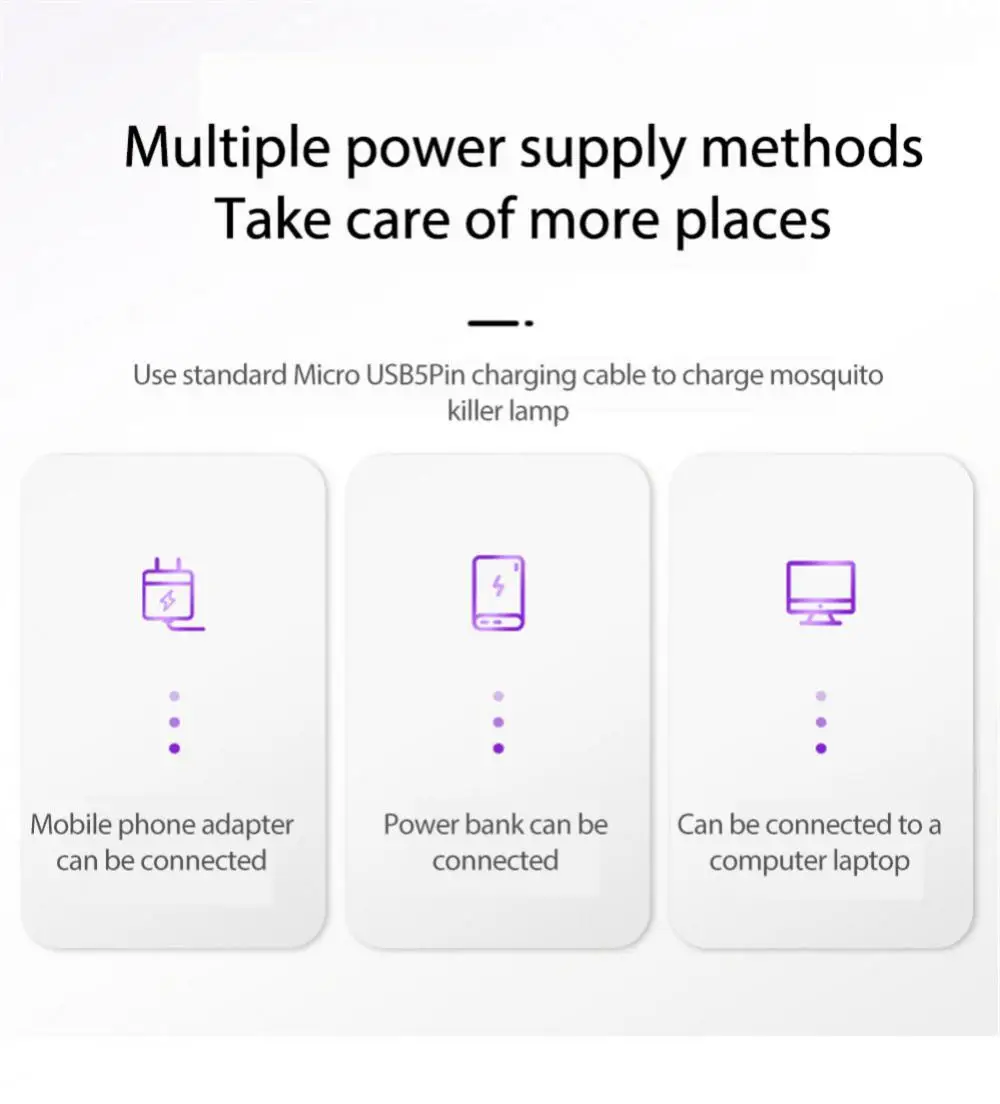 2.[удобный]-Эта практичная ловушка для комаров очень проста в использовании для всех. Его можно подключить к любому устройству с usb-портом или обычным адаптером (не входит в комплект)