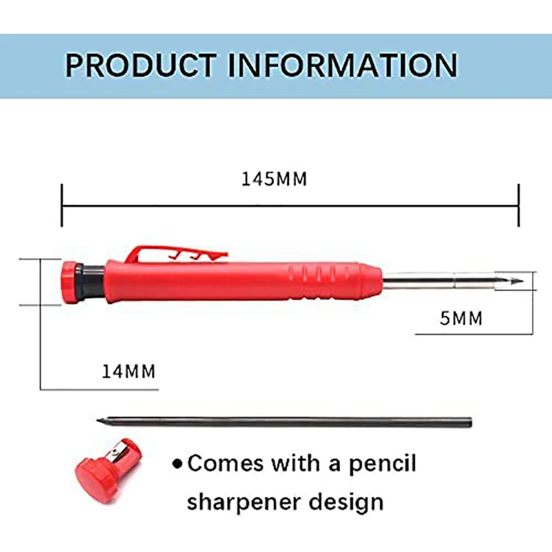 3. Механический карандаш: Карандаш Плотника не соскальзывает пальцы с карандаша и повторные следы уменьшат боль; Дизайн зажима ручки можно легко повесить на сумку, легко использовать и не легко потерять, повышение эффективности, подходит для строительства и масонов
