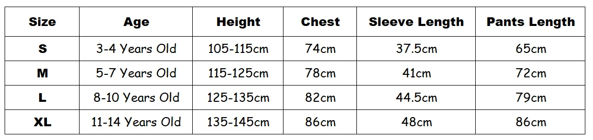 Size S : Age 3-4 Years Old , Height 105-115 cm