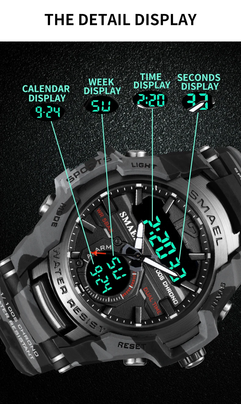 1. Бренд: SMAEL 2. Двойные часы отображаются вместе с включением задней LED-подсветки 3. Водонепроницаемость на глубине до 50 м, можно плавать, не снимая часы. 4. Тип: мужские наручные часы для занятий спортом 5. Механизм: оригинальная японская цифровая индикация 6. 14 видов цветов на выбор 8. Ширина ремешка: (около) 2.2 см 9. Диаметр циферблата: (приблизительно) 4.7 см 10. Материал ремешка: прочный ПУ 11. Материал корпуса: прочная резина + высокопрочное закаленное стекло 12. Застежка: пряжка 13. Показывают точное время 14. Прекрасный подарок для кого-то особенного Примечание: Мы рекомендуем вам не носить его во время плавания. Если вы плаваете или ныряете с часами, пожалуйста, не нажимайте никаких кнопок под водой! Включенные компоненты: -1 x Оригинальныенаручные часы отSMAEL -1 х Инструкция по эксплуатацииТовар отличный. Для чистки кишечника без лишнего вливания воды. Дальше наконечника вода не уходит. Нужно лечь на живот. Залейте воду... Читать отзыв полностью...