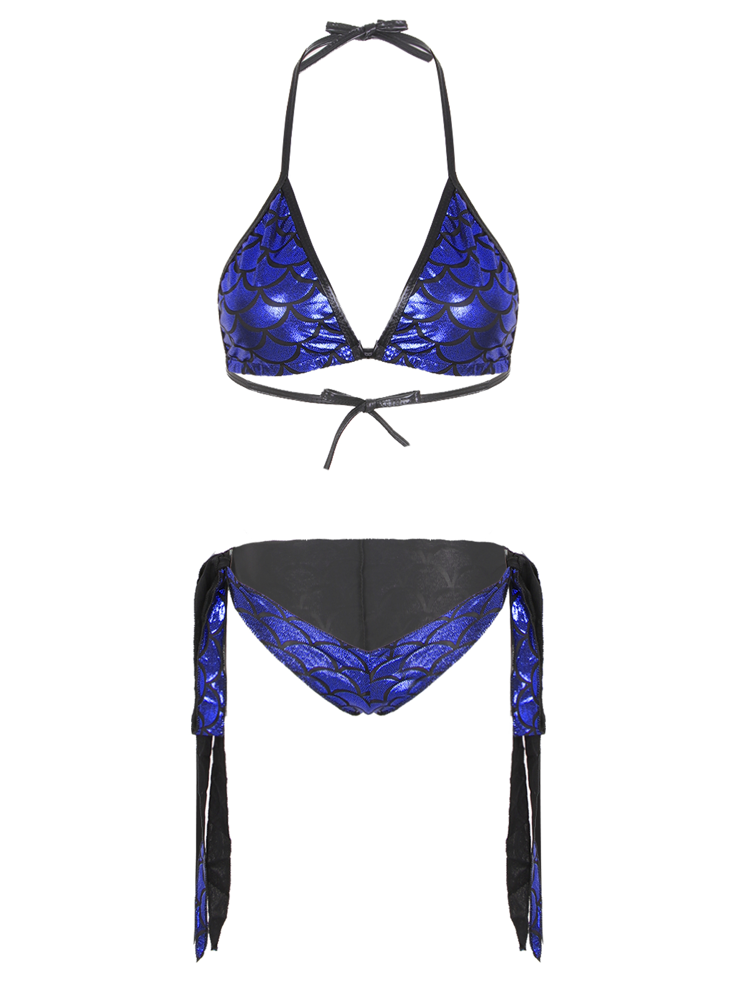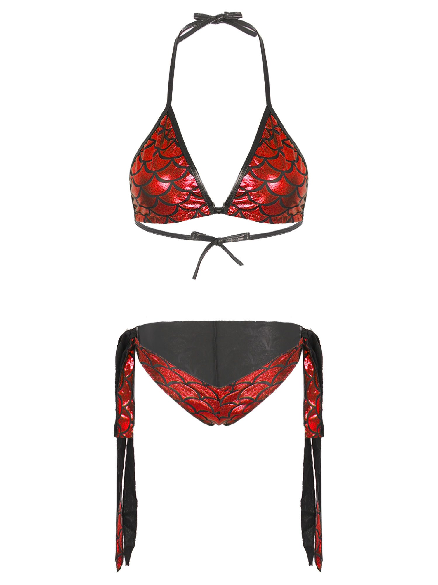Женский металлический блестящий купальник бикини с принтом рыбьей чешуи, клубный бюстгальтер на шнуровке с трусиками.