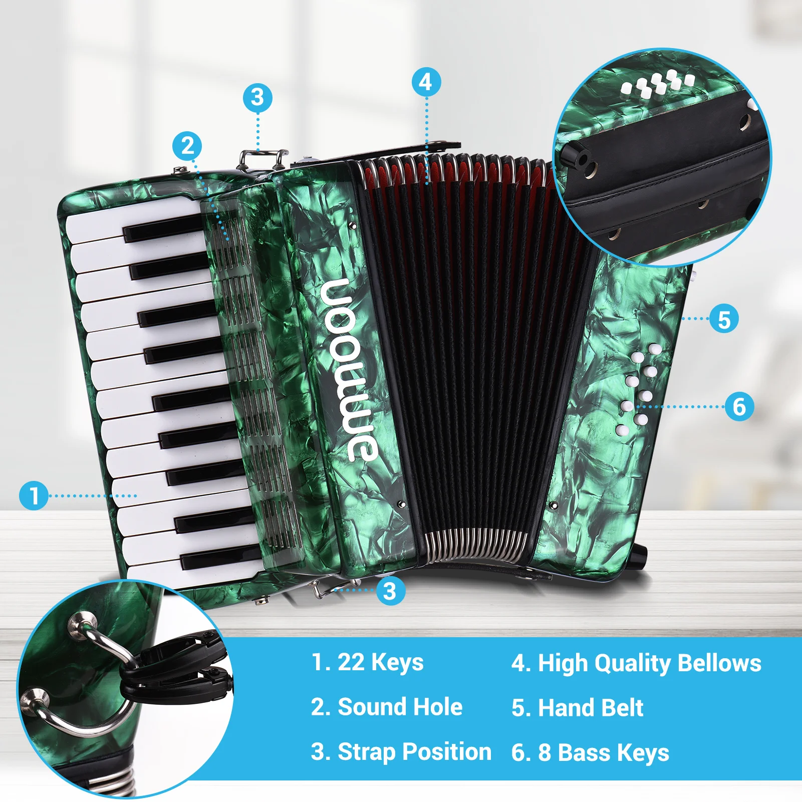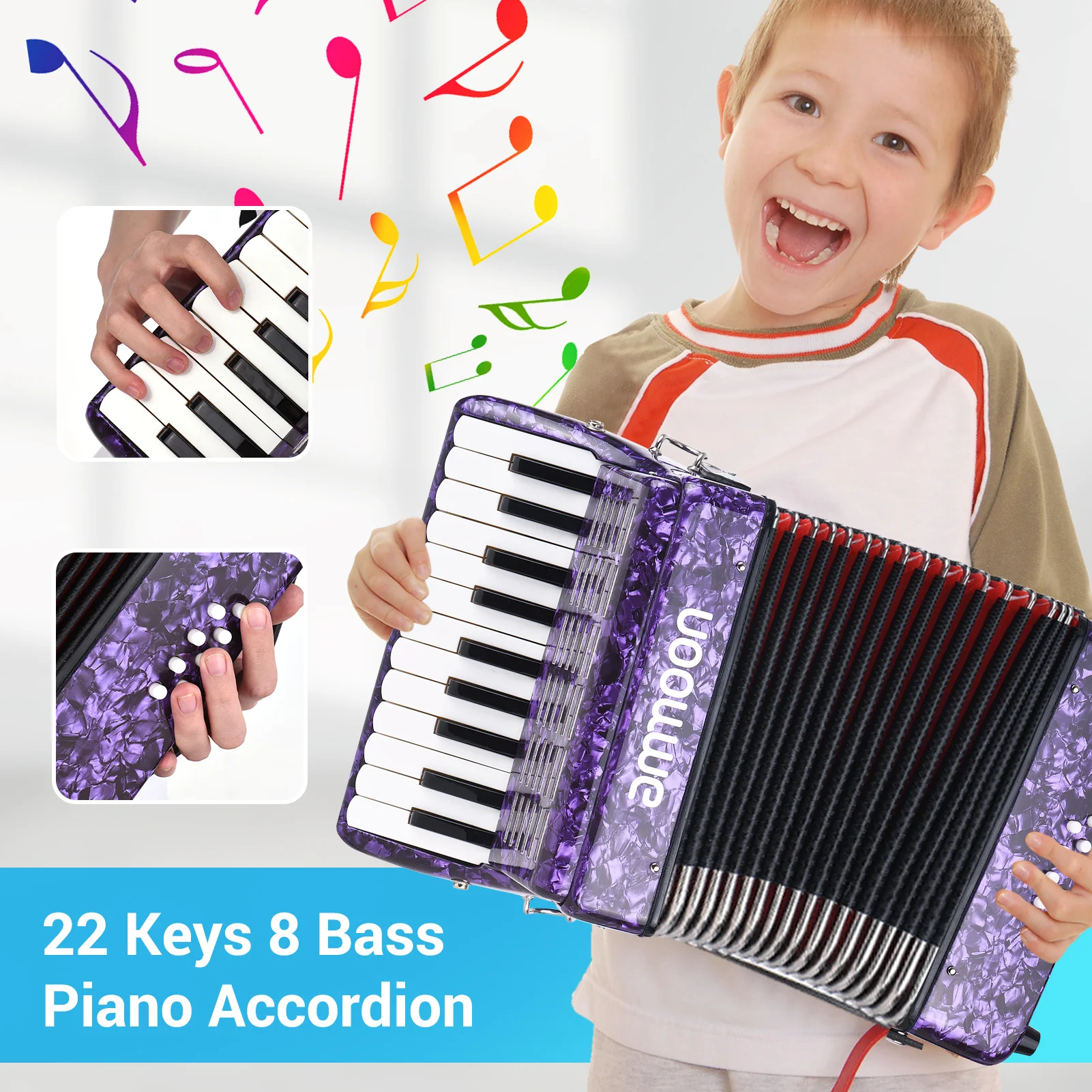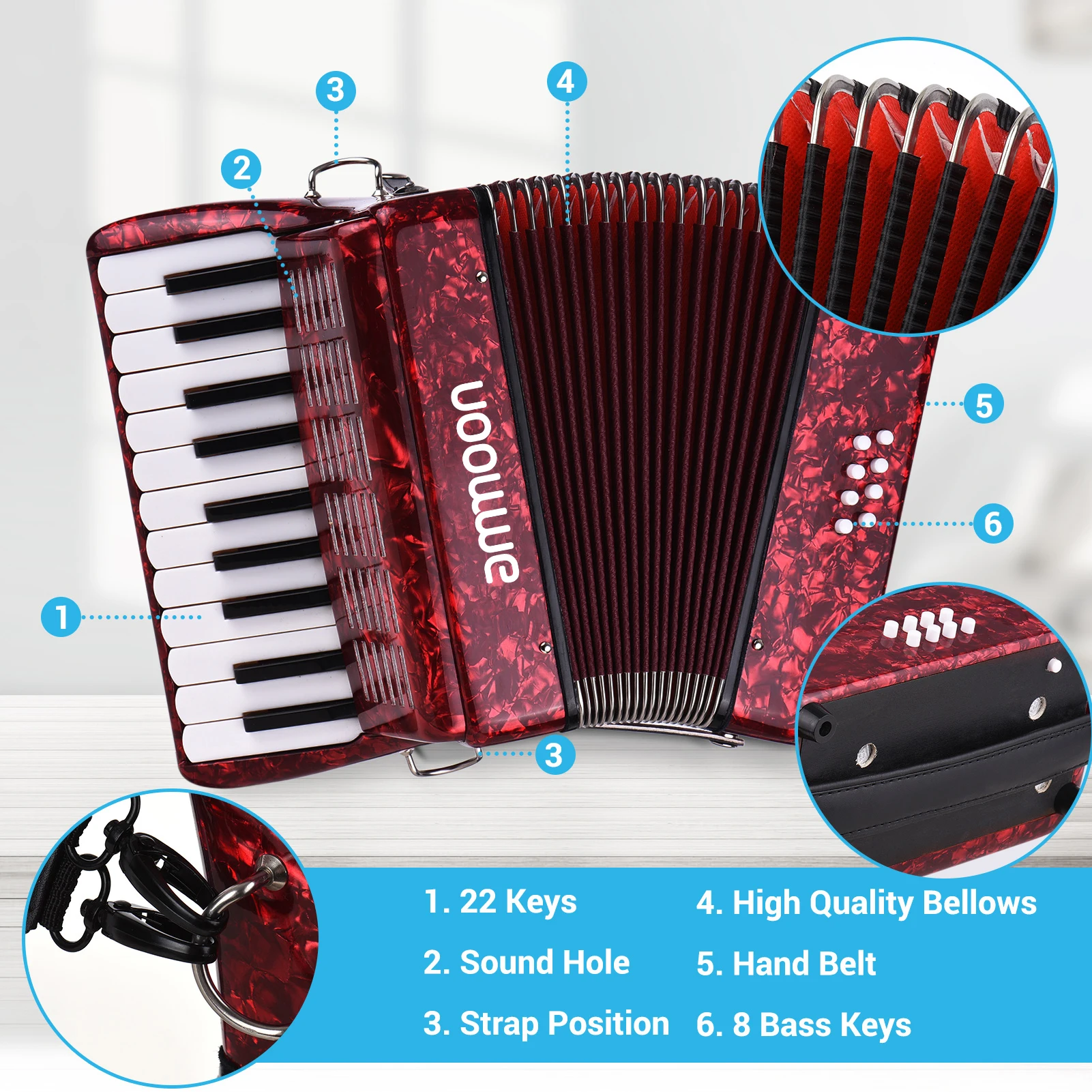 Аккордеон, компактный и легкий, поставляется с 2 регулируемыми лямками, для легкой игры.