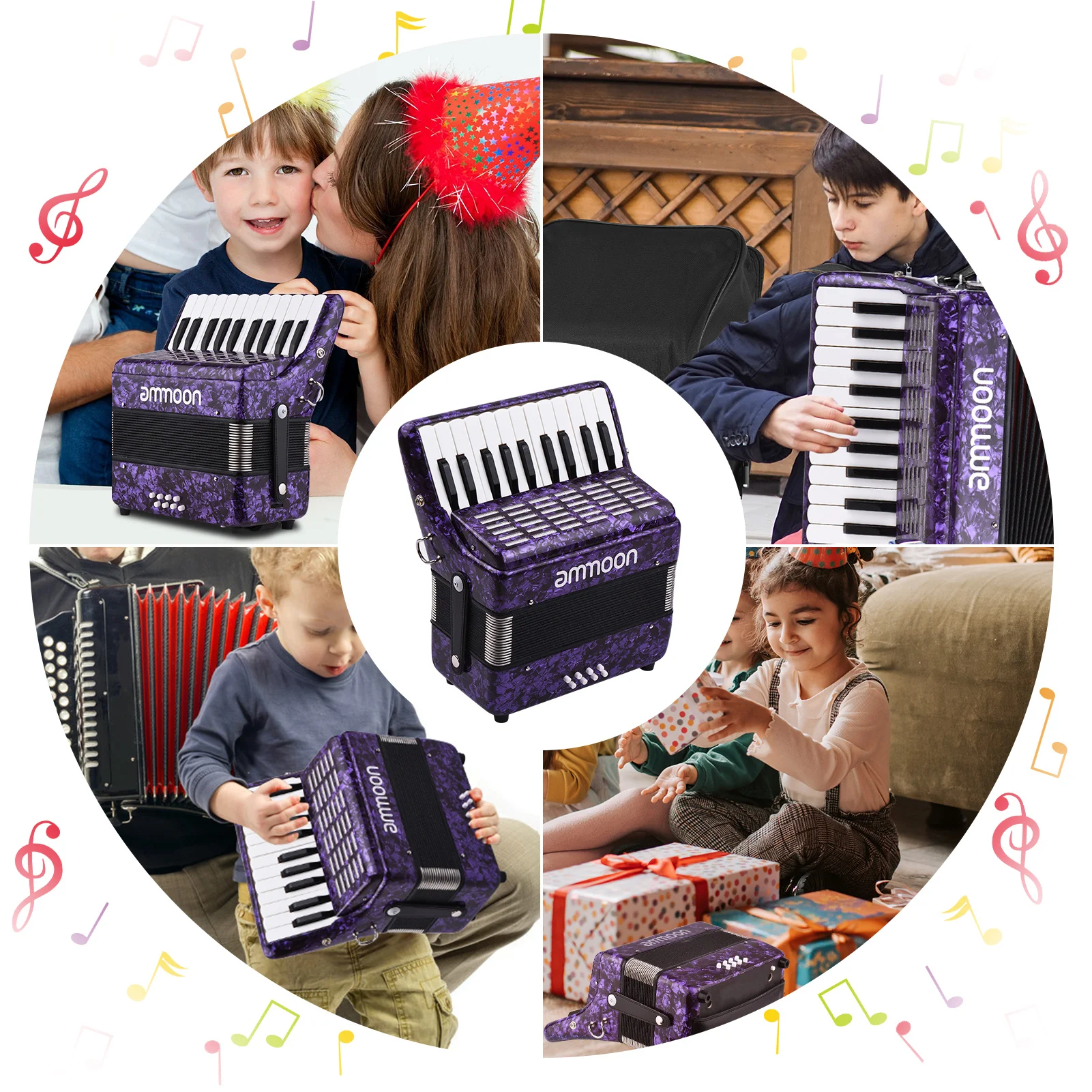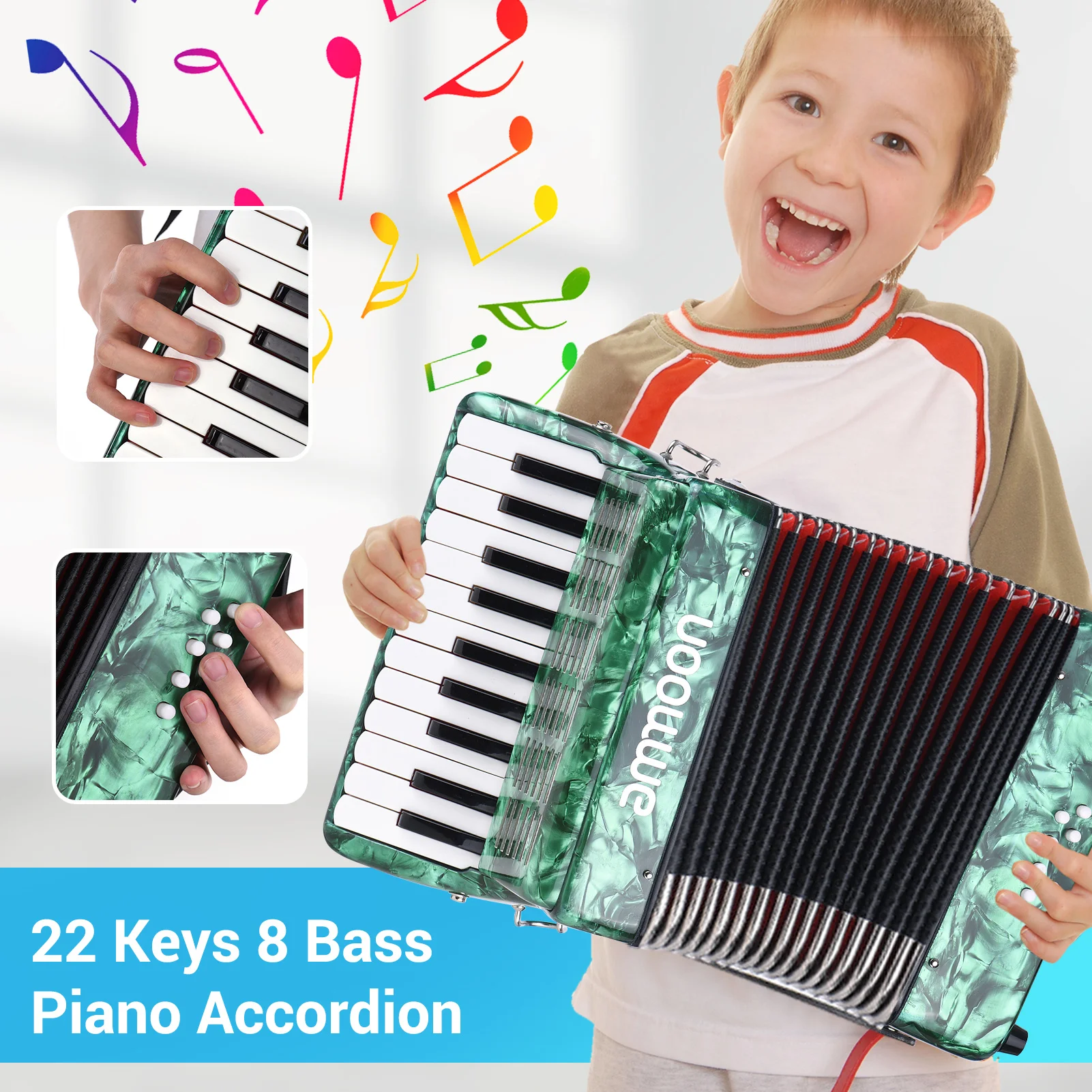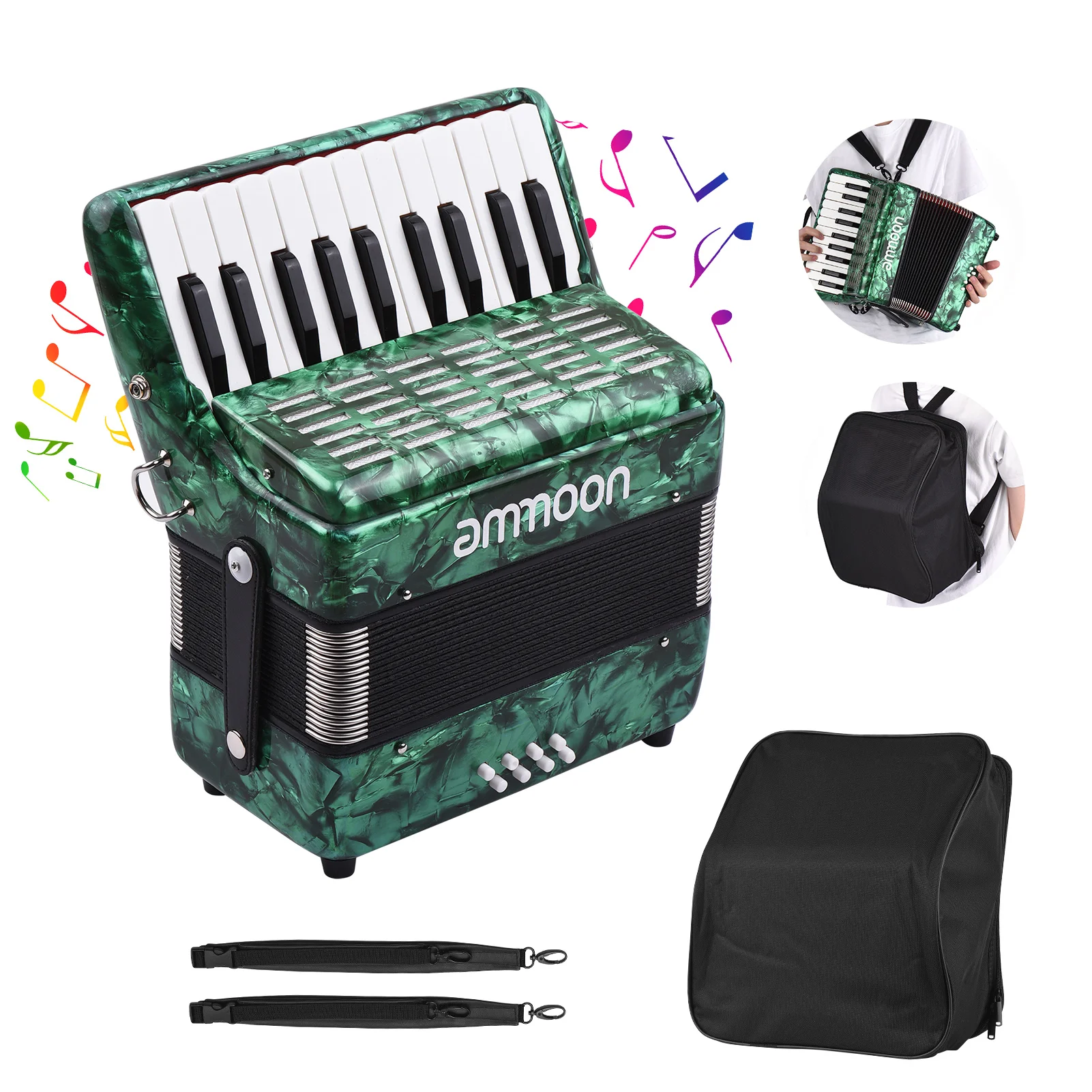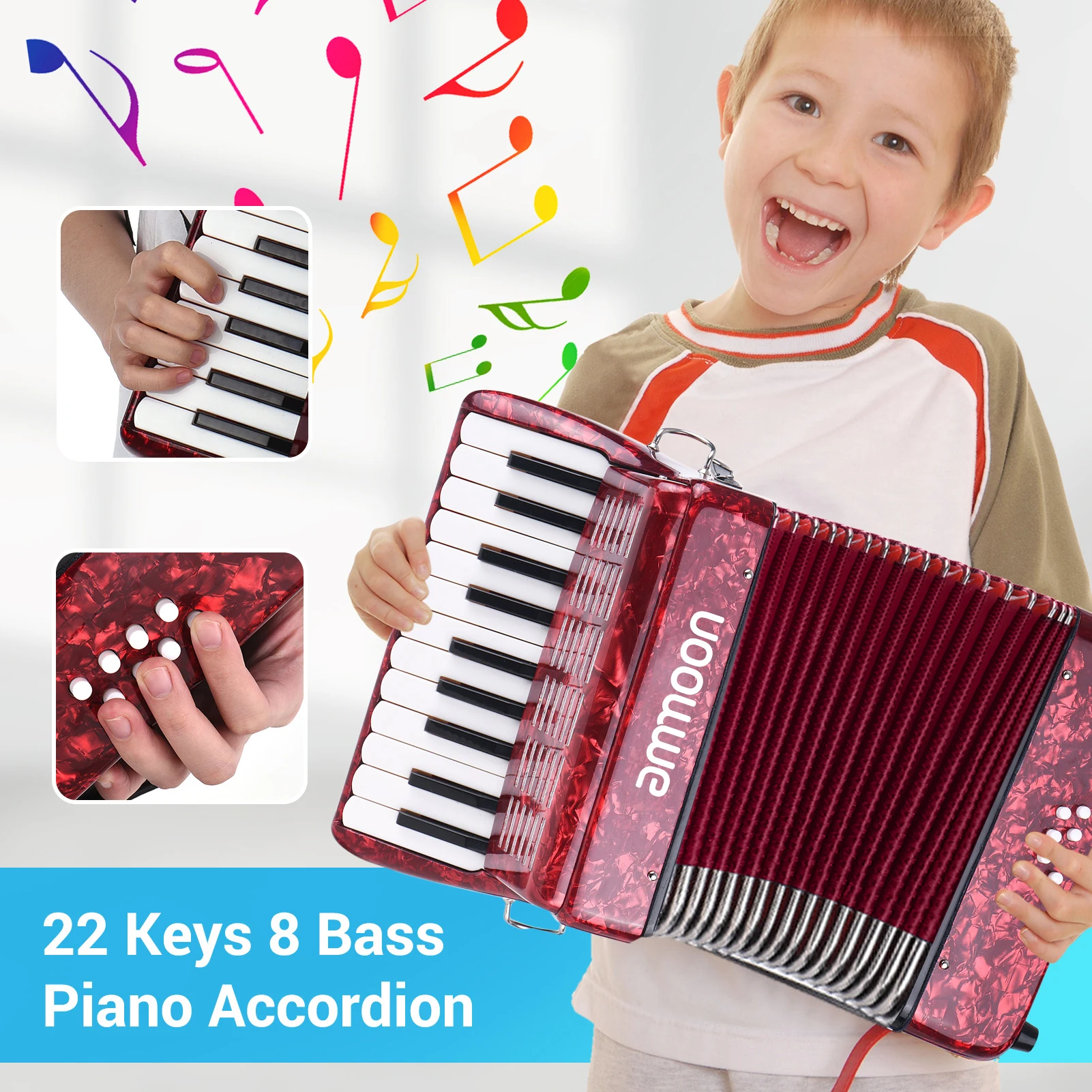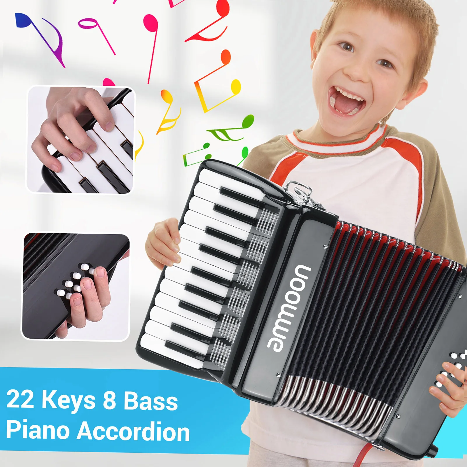 Ammoon 22 клавиши 8 басов фортепиано аккордеон с регулируемыми лямками Gig Bag музыкальный инструмент для детей начинающих