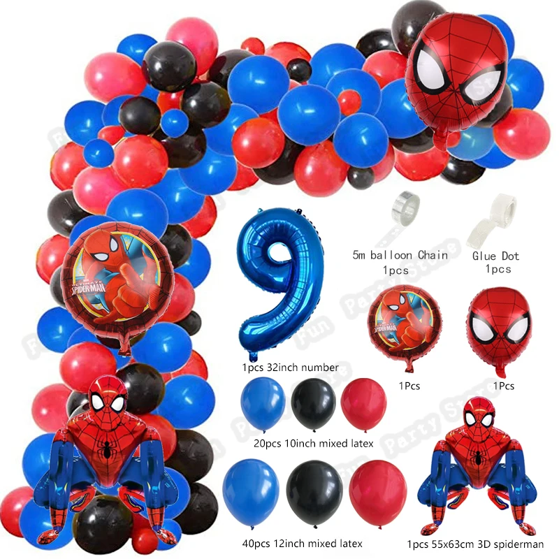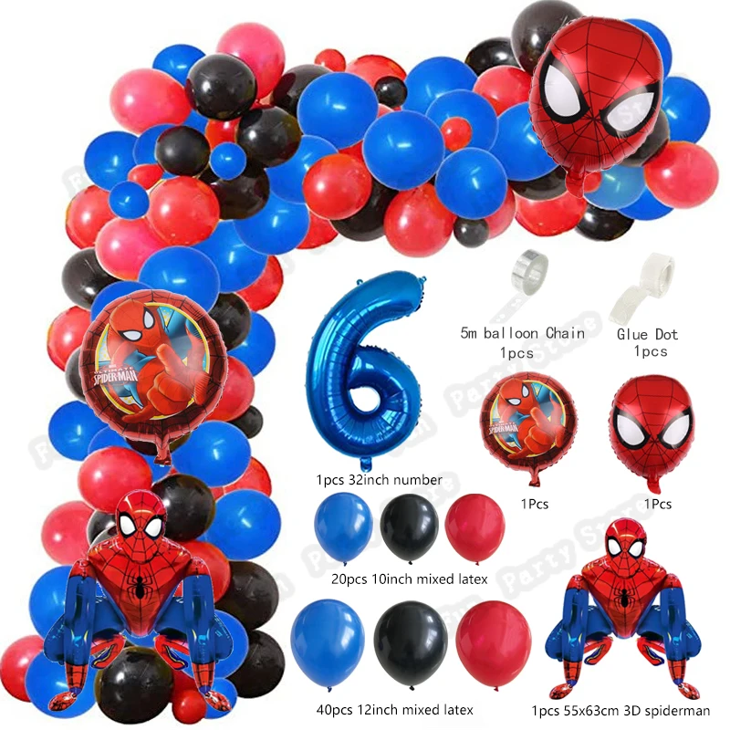 1 комплект большой 3D "Человек-паук" Воздушные шары-гирлянды арочный комплект красные, синие воздушных шаров из латекса, на возраст от 1 до 9 лет День рождения Декор супергероя тема воздушные Globos