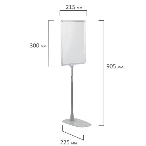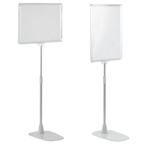 Напольная стойка-держатель идеальна для донесения визуальной информации до клиента или посетителя. Подходит для использования в магазинах, выставочных залах, на предприятиях. Обладает функцией регулировки по высоте.