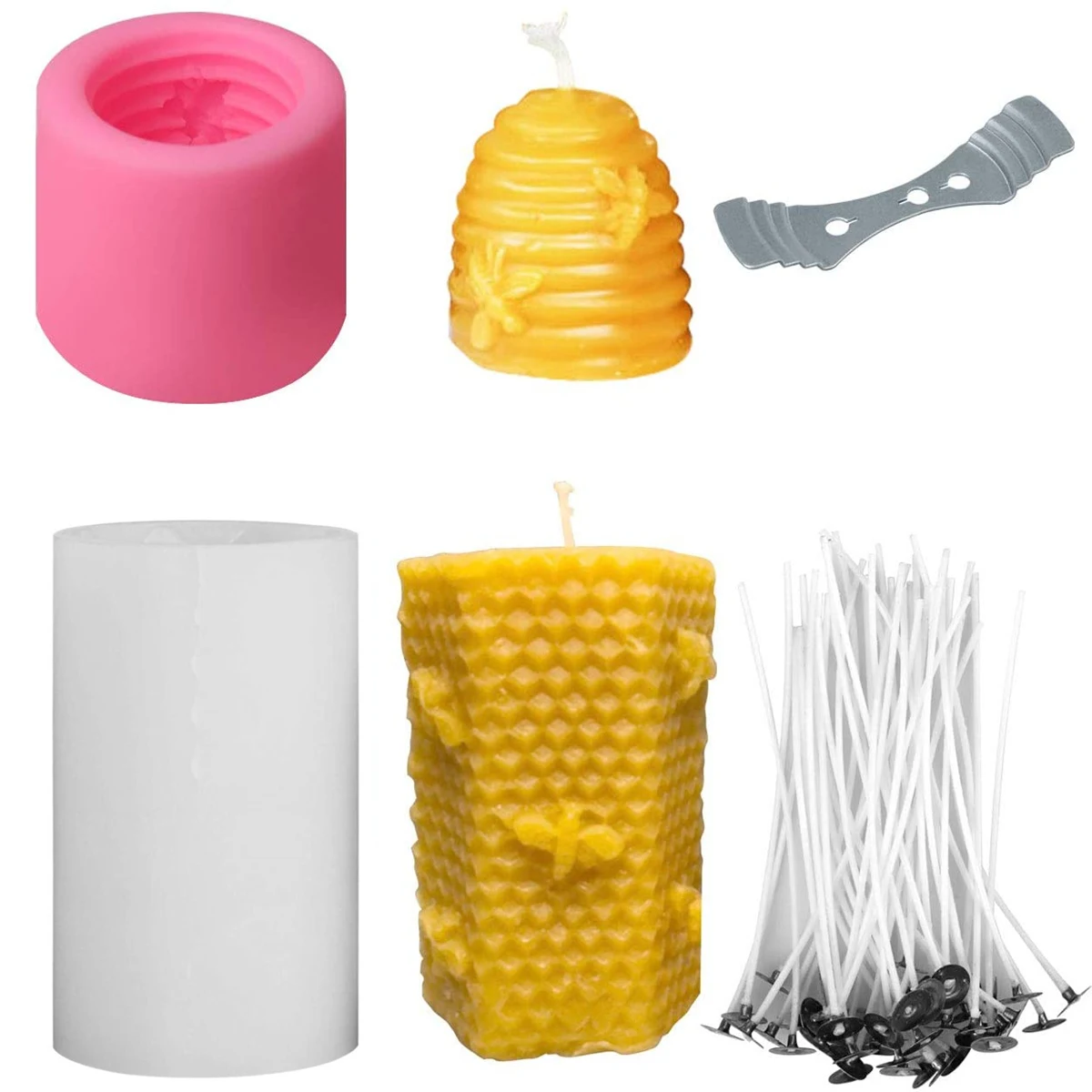4. Изготовлен из высококачественного материала, устойчив к высоким и низким температурам и прослужит весь срок службы. 5 форм для сотовых свечей, 50 фитилей для свечей с корнями, 1 нержавеющая сталь держатель фитиля, 6 формы для ульев 3d очень универсальны, помимо свечи или мыла, их также можно использовать как торт, шоколад, конфеты, выпечка, кубики льда, смола или используется для поделок своими руками