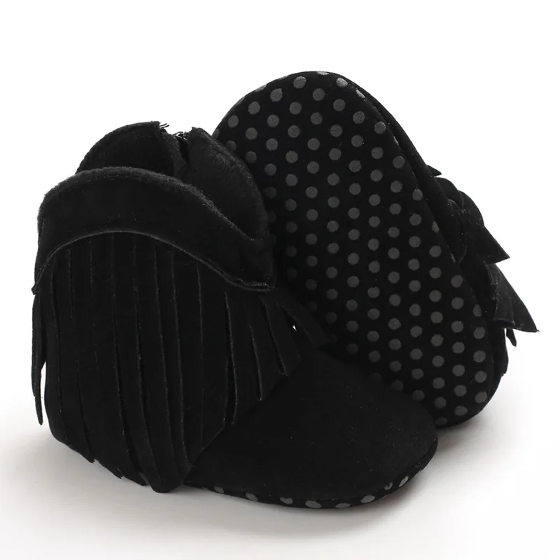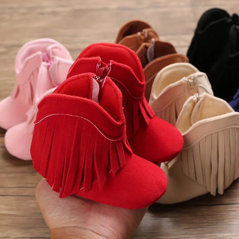 Обувь для новорожденных девочек; Ботинки с кисточками; 1 год; Обувь для первых шагов; Хлопковая мягкая подошва; Нескользящая обувь для младенцев; Bebe; Зимние теплые детские ботинки
