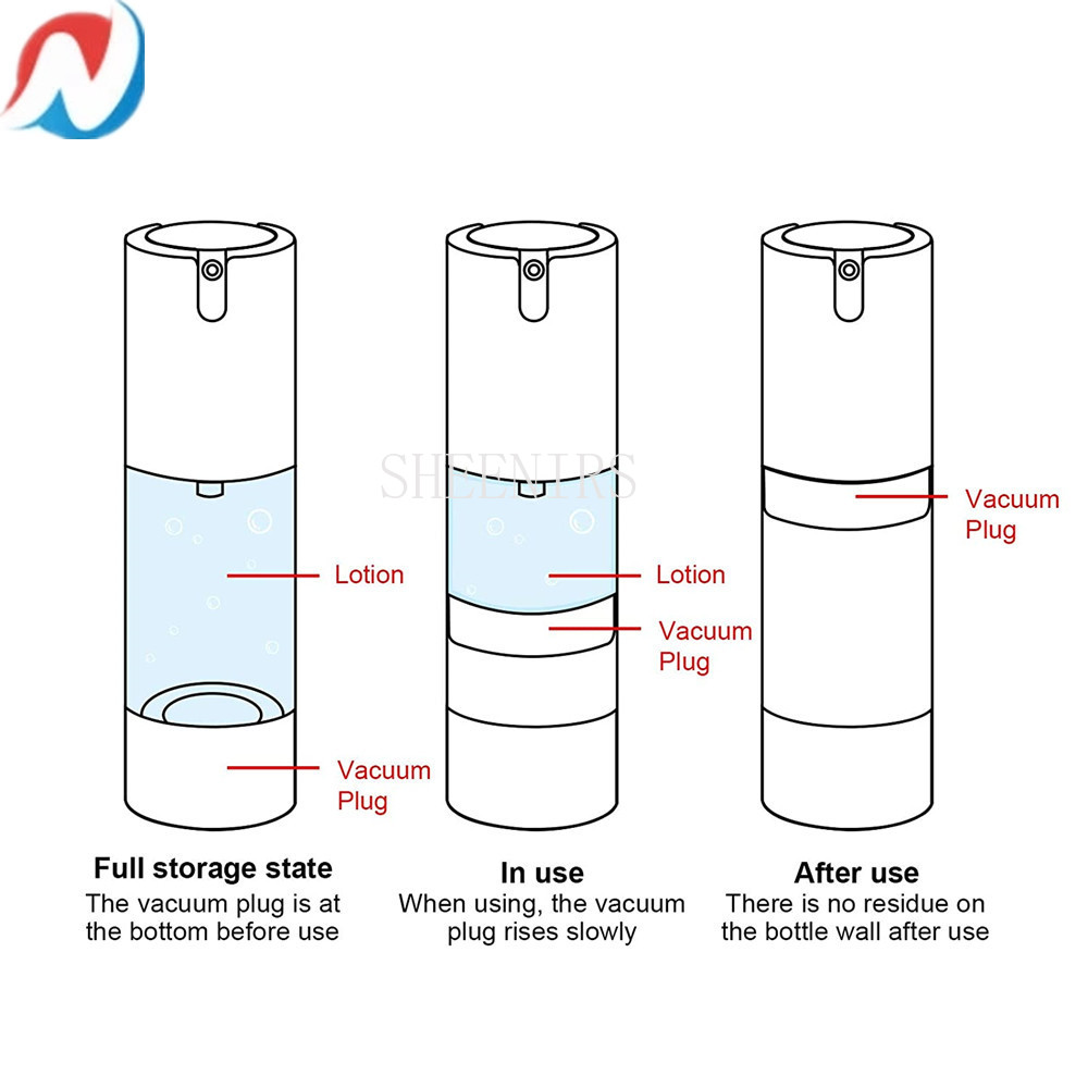 Жидкость в безвоздушной бутылке полностью изолирована от воздуха, поэтому она позволяет избежать окисления косметики и роста бактерий