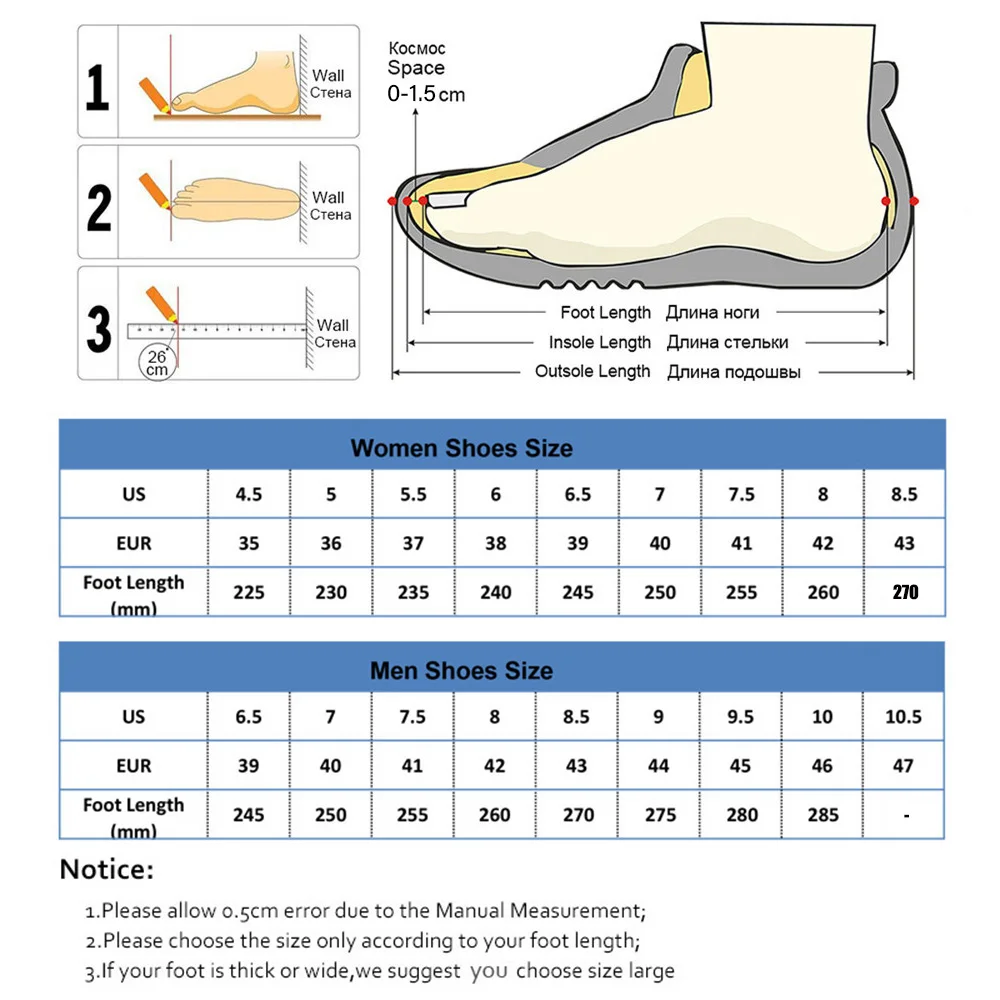 Пожалуйста, внимательно прочитайте нашу таблицу размеров! Это поможет Вам выбрать правильный размер на основеДлина вашей стопы. Обратите внимание, что если ваша стопа слишком длинная или слишком широкая, пожалуйста, выберите размер, который на один размер больше обычного.