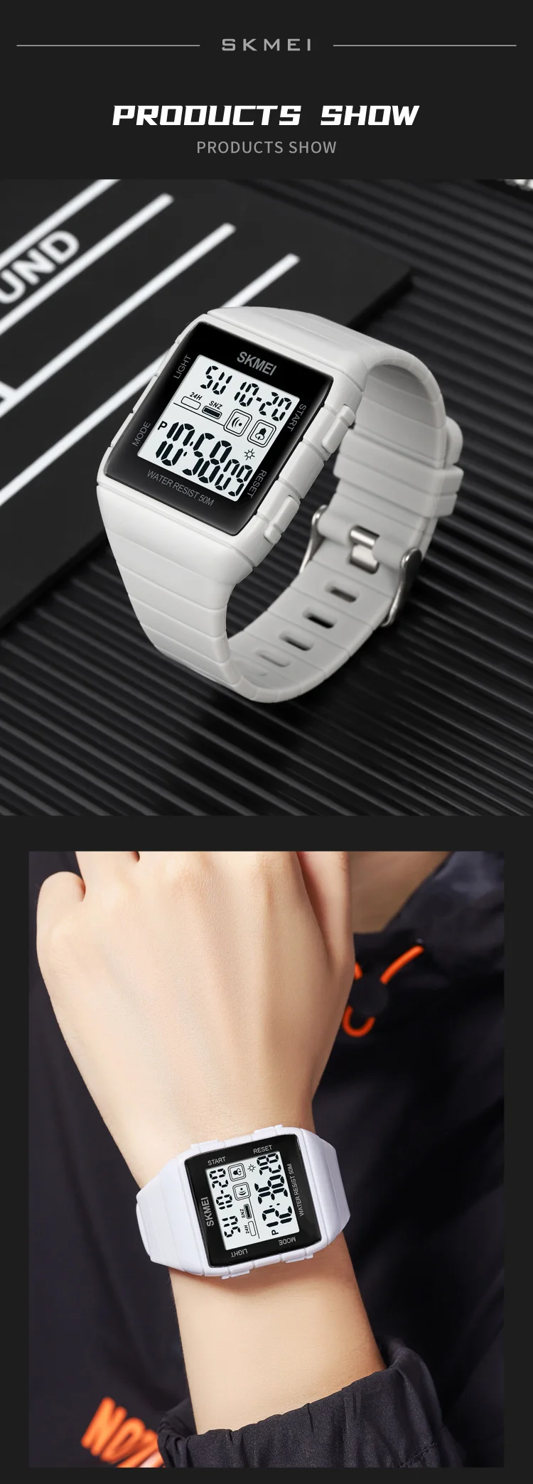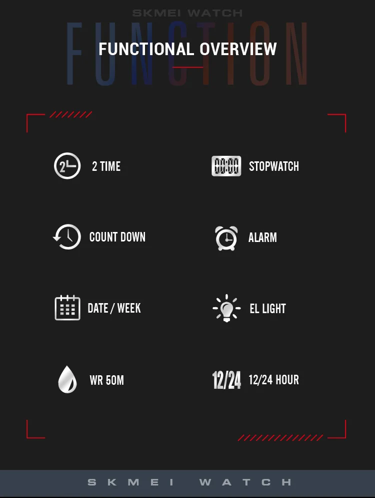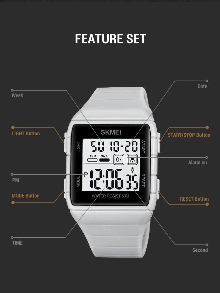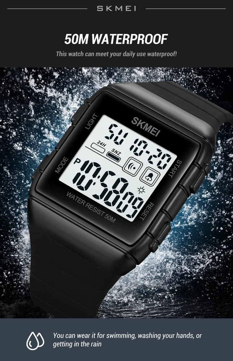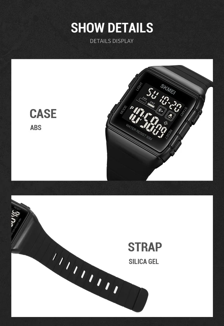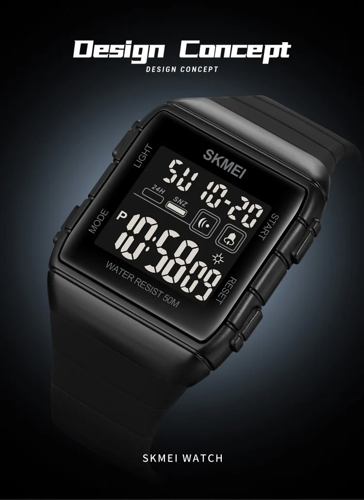 SKMEI 50m Waterproof Sport LED Light Electronic Watches Stopwatch Alarm Countdown Men Digital Clock Wristwatch Relogio Masculino