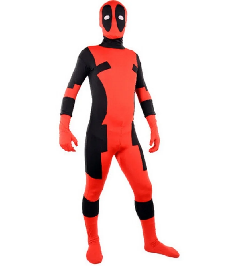 This suit is made of spandex which is available for hand wash. Gloves and feet and Hood are attached on the suit. The full mask is removable. Mask is made with full face. Two-way long zipper is added on the back.