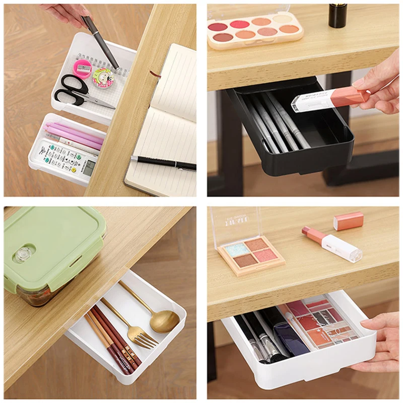 2. Оторвите ленту с задней стороны и нажмите поднос на стороне под столом.