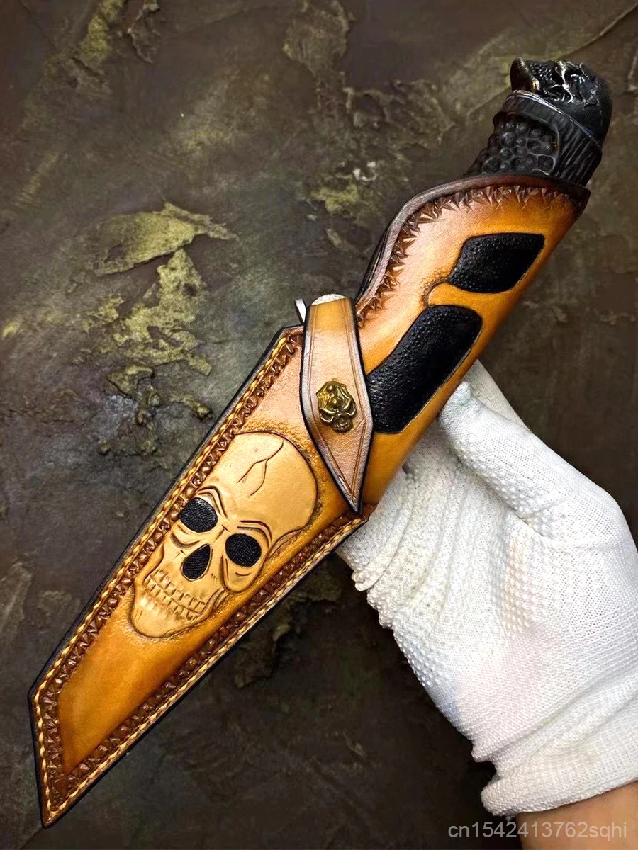 Материал ручки: черное дерево + нержавеющая сталь, ручная резка, резьба по файлам + Скелет из легированной стали