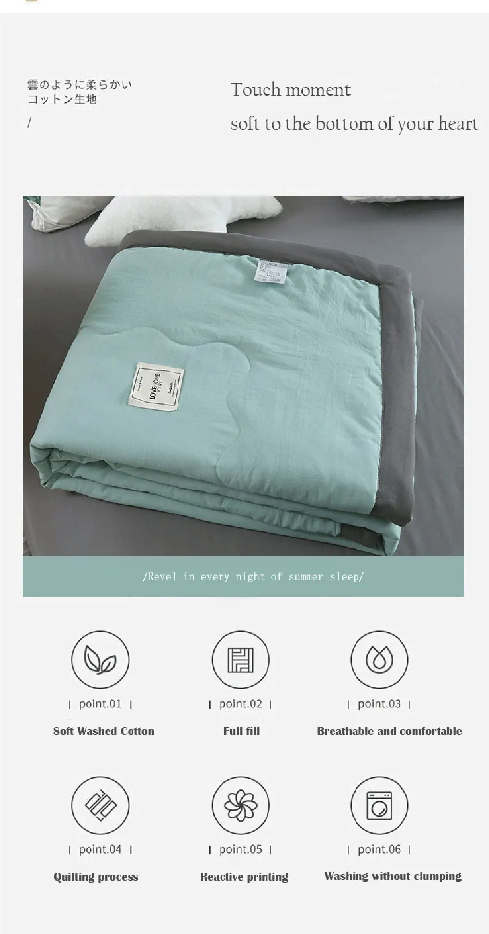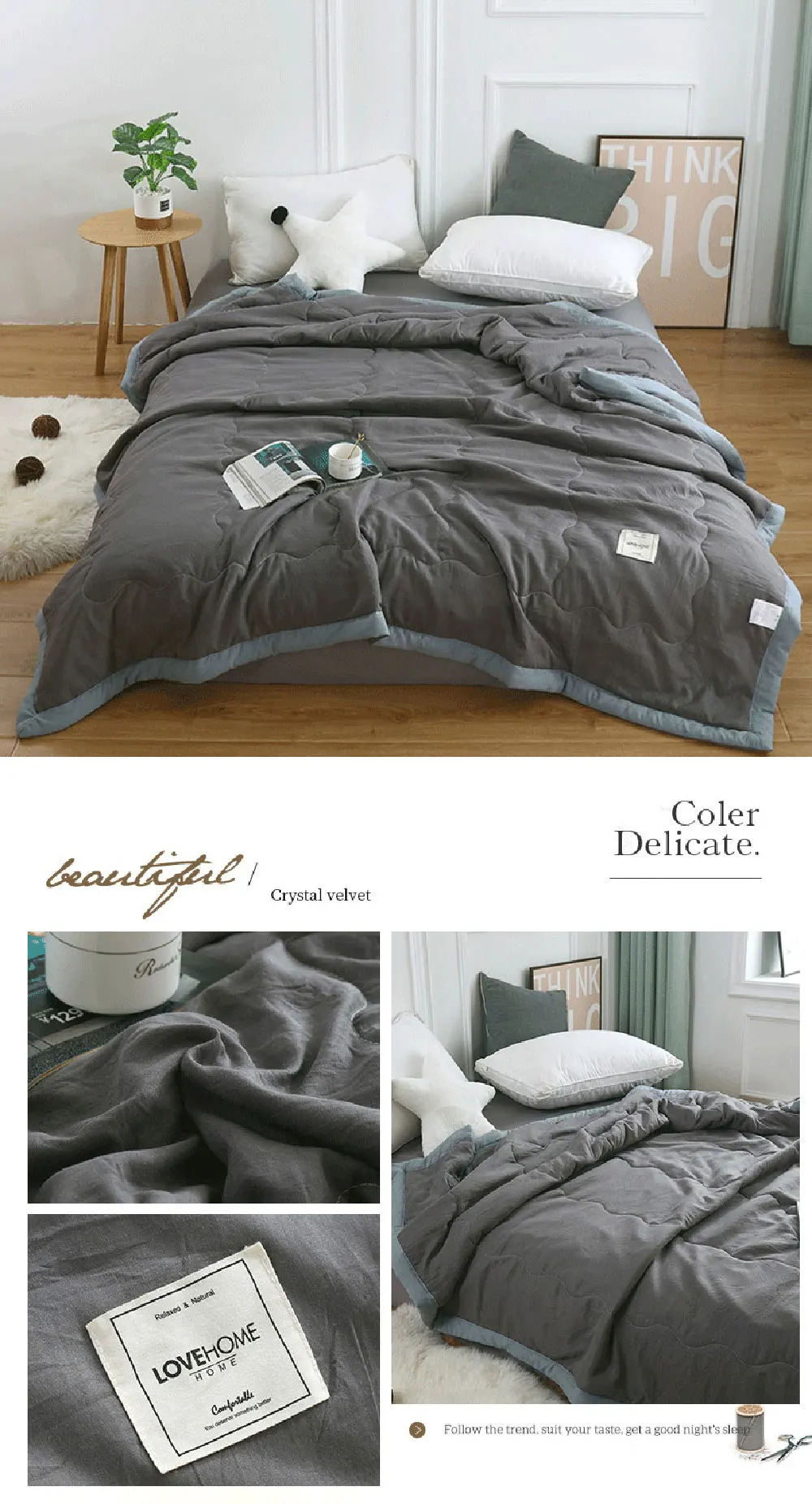 Летнее однотонное тонкое стеганое одеяло, моющееся Хлопковое одеяло для кондиционера, мягкое, приятное для кожи одеяло для детской кровати для взрослых