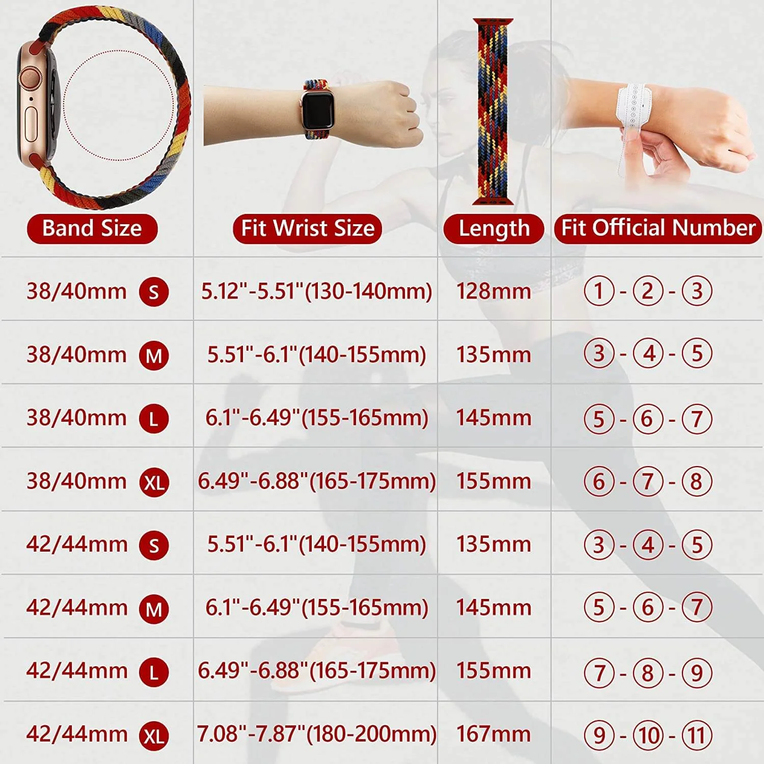 [Совместимые модели]Наши плетеные повязки для часов совместимы сApple Watch 38 мм/40 мм или 42 мм/44 мм. Серия 6/5/4/3/2/1 SE, Nike +, Sport and Edition. Все модели.38 мм/40 мм размер подходит 4,5 "-7,9" (114-200 мм) запястье, 42 мм/44 мм размер подходит 5,1 "-9,5"(140-240 мм) запястье.[Лучший подарок]Этот Плетеный мягкий растягивающийся ремешок для часов подходит для особых дней рождения, Рождества, Дня Святого Валентина или праздничного подарка для семьи и друзей.