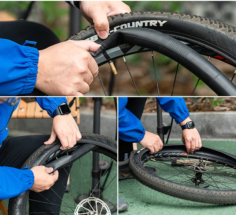 3. Воздушная насадка проходит через отверстие обода, внутренняя трубка постепенно устанавливается во внешнюю шину, а внутренняя трубка аккуратно выпрямляется вручную. Предотвращает появление морщин