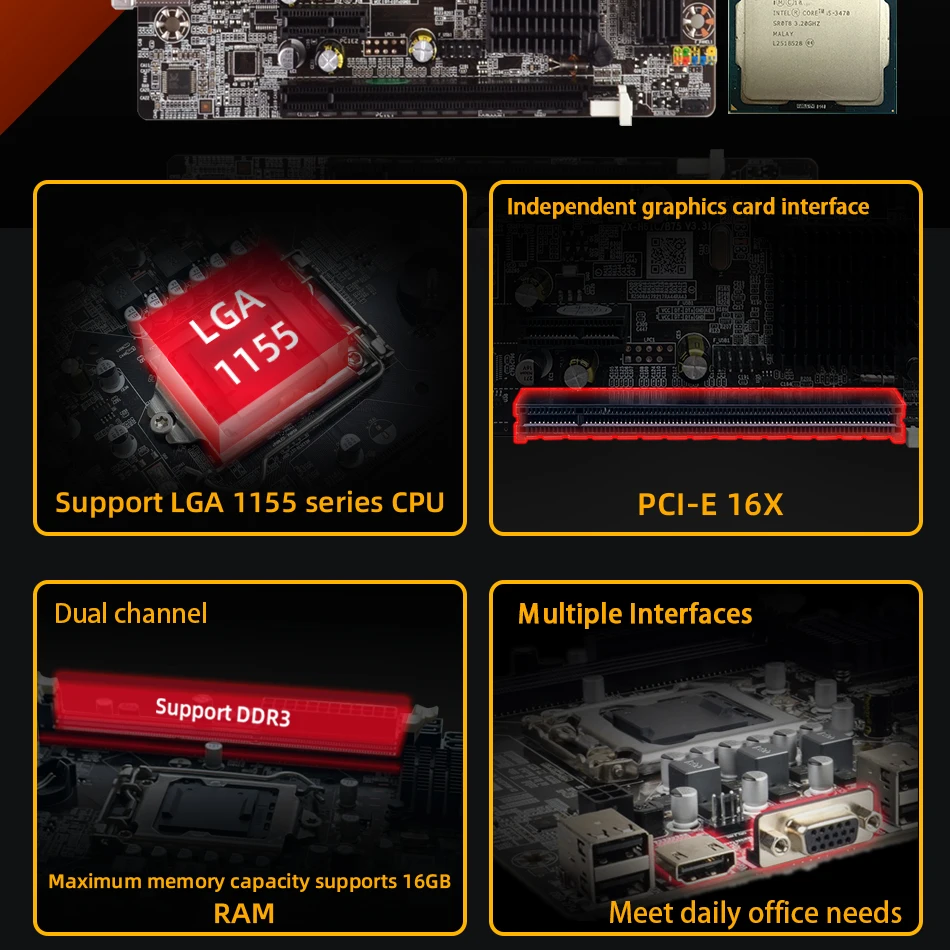Доставленная посылка содержит: 1 шт. * материнская плата B75, 1 шт. * i5-34700cpu,8 Гб 1600*2 шт. = 16 Гб DDR3.