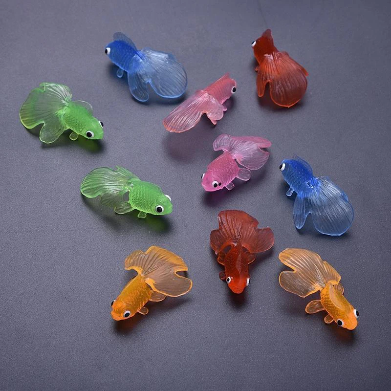 10Pcs Colorful Simulation Goldfish Squishy Toy Cute Animal Soft Rubber Gold Fish Swimming Beach Decoration Funny Gift