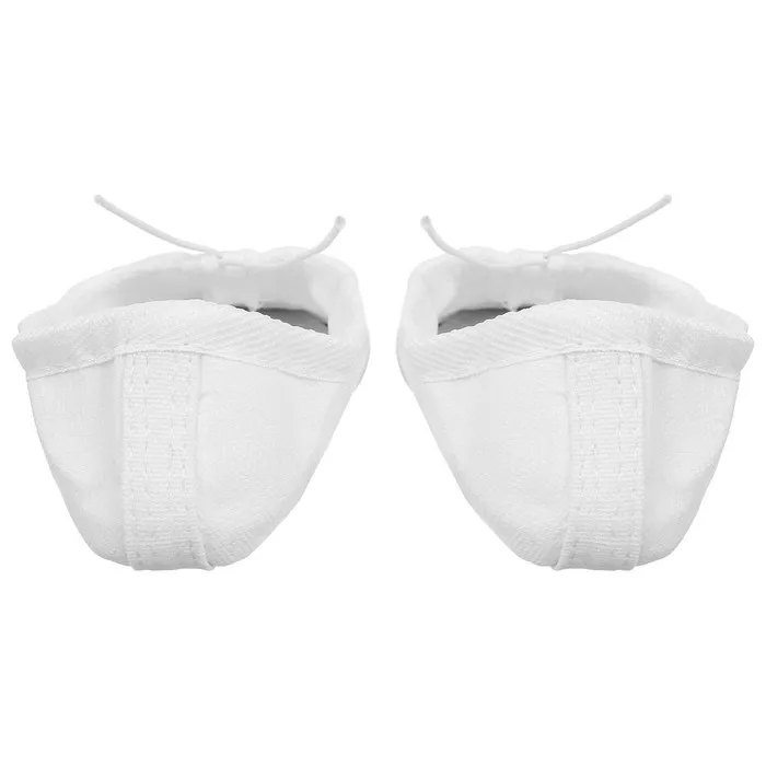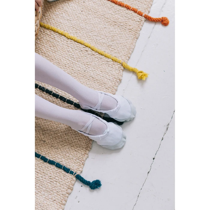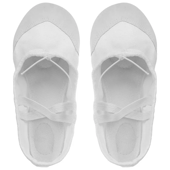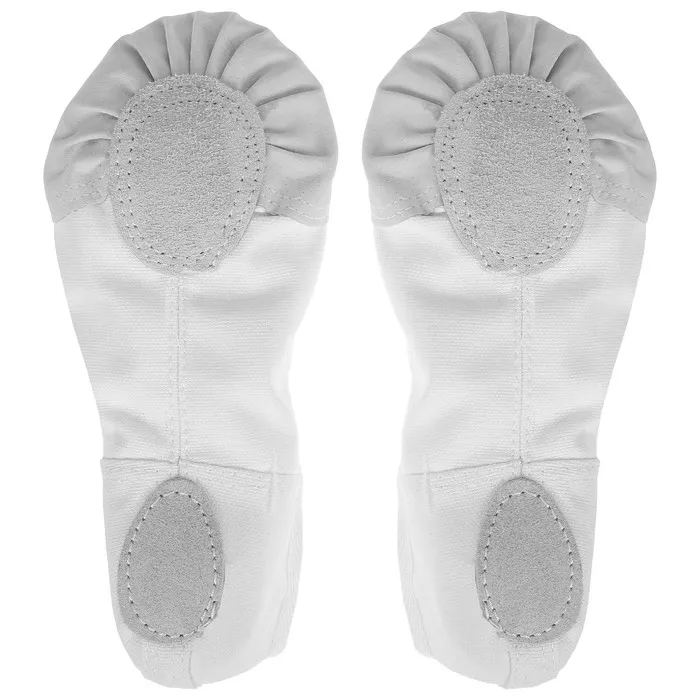 Балетки подходят для занятий танцами, гимнастикой и спортом. Вставки на подошве из натуральной кожи не скользят на гладком паркете и обеспечивают хорошее сцепление с площадкой. Балетки держатся на ноге с помощью небольших резиночек. Обувь на тканевой основе плотно прилегает к ноге и в то же время не сковывает движений. Нейтральный цвет подойдёт любому костюму.