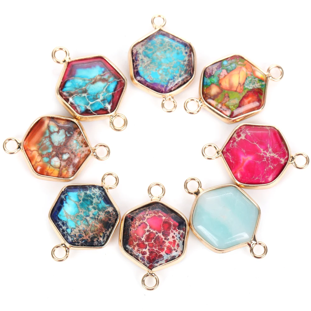 Натуральный красочный шестигранный морской камень из осадочной породы Подвески для ювелирных изделий Изготовление поделок своими руками ожерелье аксессуары ручной работы 16x25mm