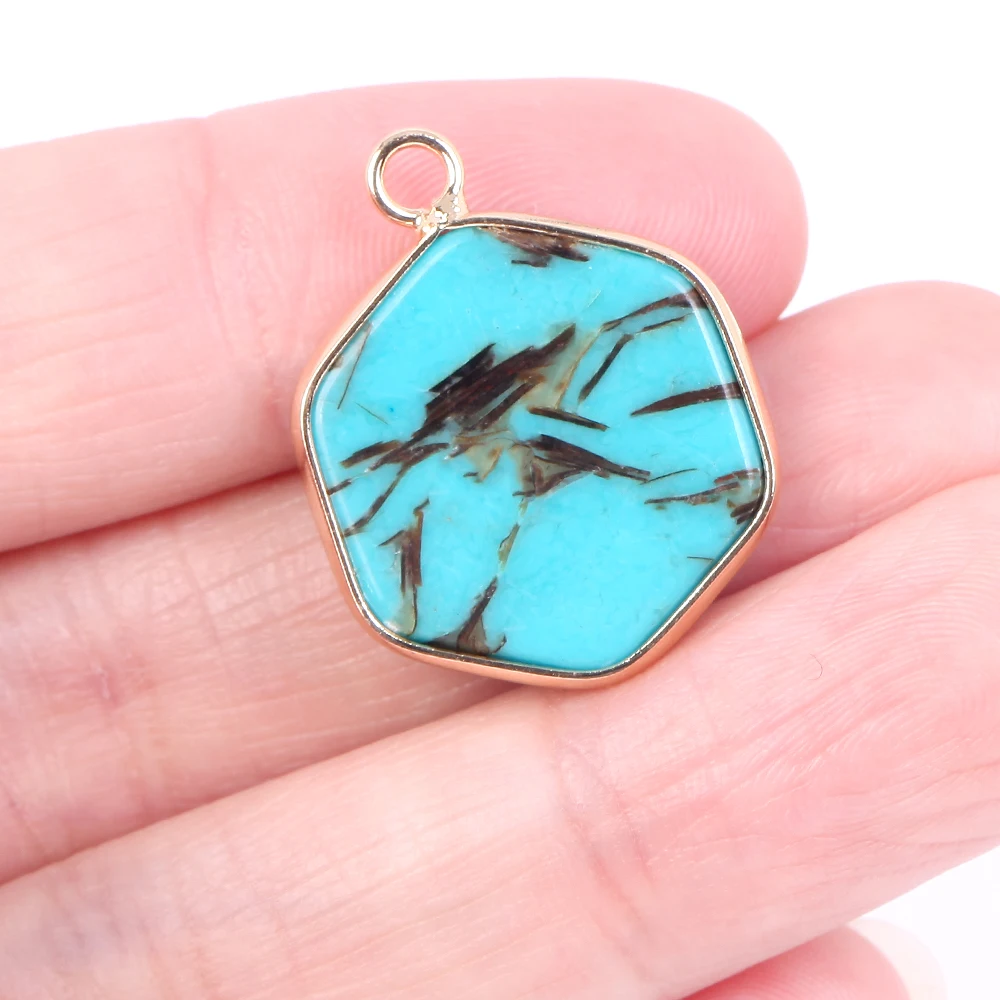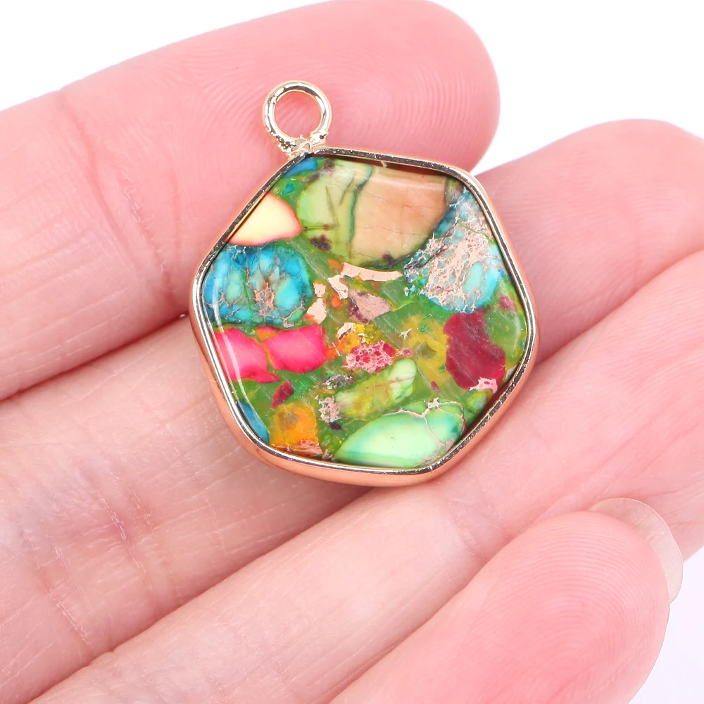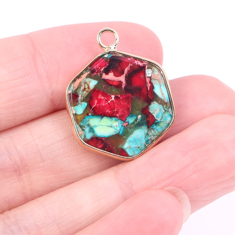 Подвески из натурального камня с шестигранным цветным морским осадочным кулоном подвески для ювелирных изделий Изготовление поделок своими руками ожерелье аксессуары ручной работы