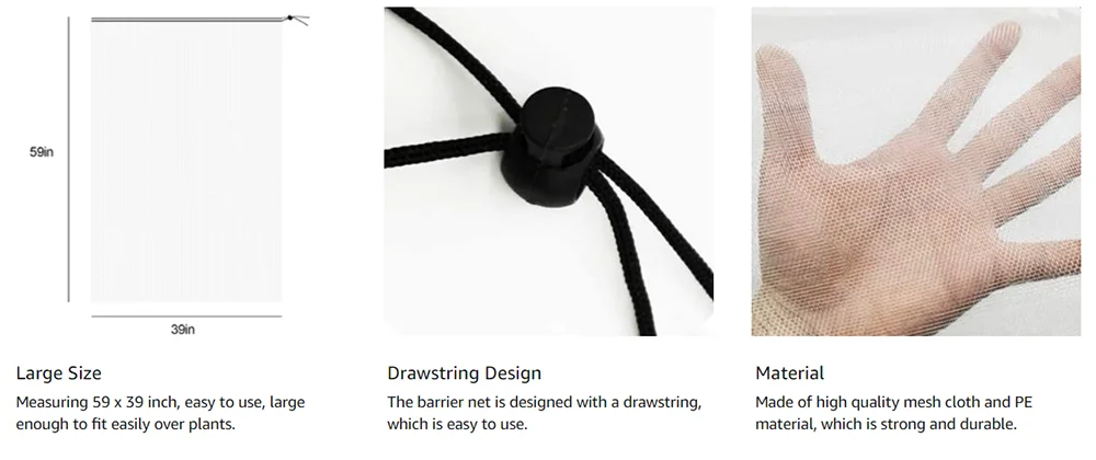 Посылка включает в себя 2 упаковки садовый жук, Размер 3,2x4,9 футов, прост в использовании и достаточно велик, чтобы легко поместиться в растения, идеально подходит для защиты растений от насекомых, вредителей, птиц и многих других животных.