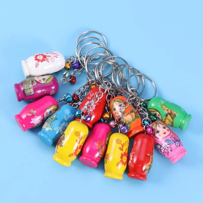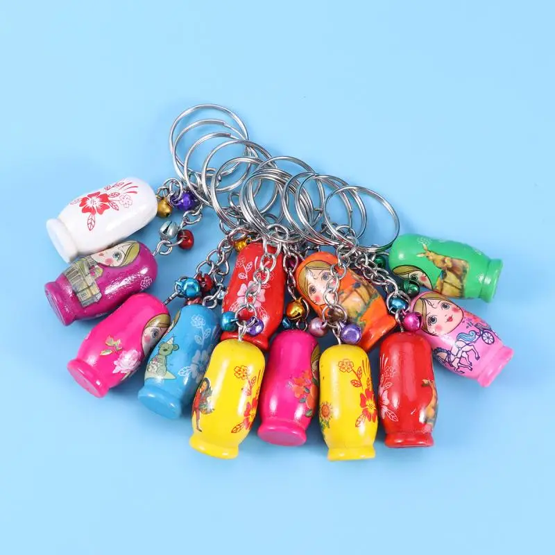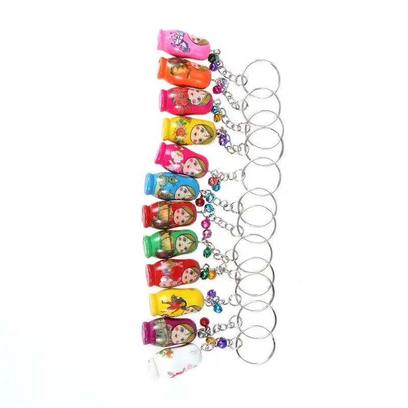 1 x set of 12PCS Creative Key Chains Wood Russian Dolls Key Rings