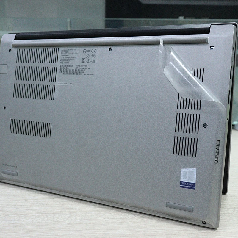 2. Когда вы готовы наклеить пленку на ноутбук, вы должны положить пальцы посередине, стараясь не прикасаться к краю пленки, чтобы край можно было крепко приклеить. Затем используйте сушилку для волос, чтобы нагревать ее во время прилипания. Если ваши пальцы будут держать на касании края, это уменьшит его вязкую силу.