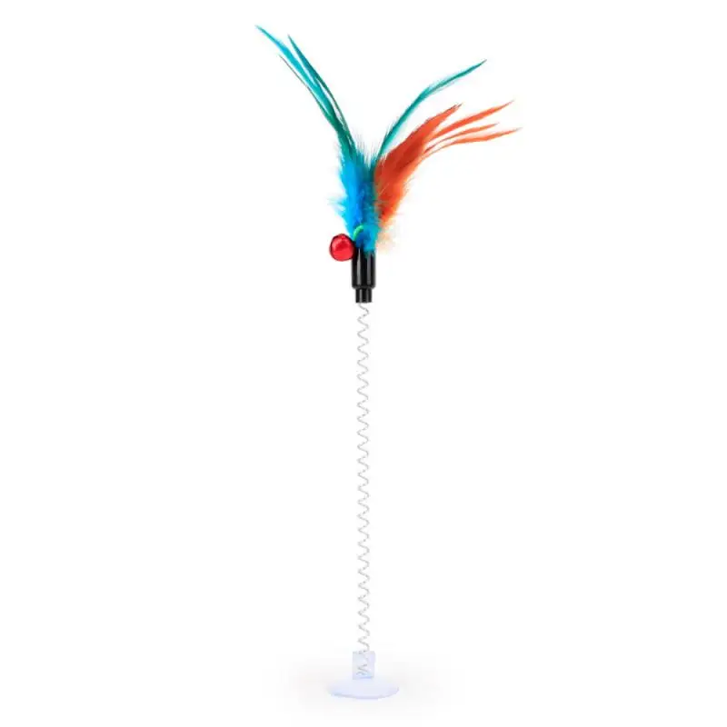 1PC Multicolor Feather Stick Spring Toy Elastic Scratcher Mice Teaser Cat Interactive Pet Toys Suction With Bell Mouse Cat Toys