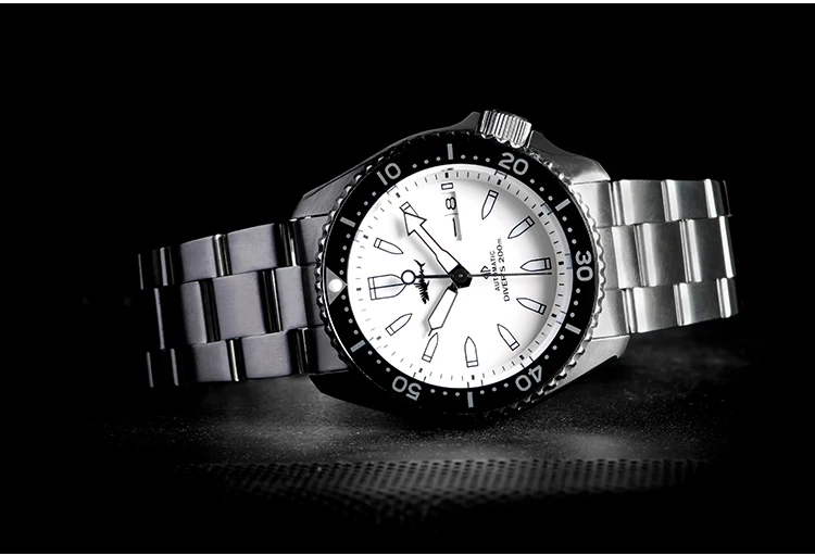 Мужские механические часы с сапфировым стеклом водонепроницаемые часы с белым циферблатом, 200 м