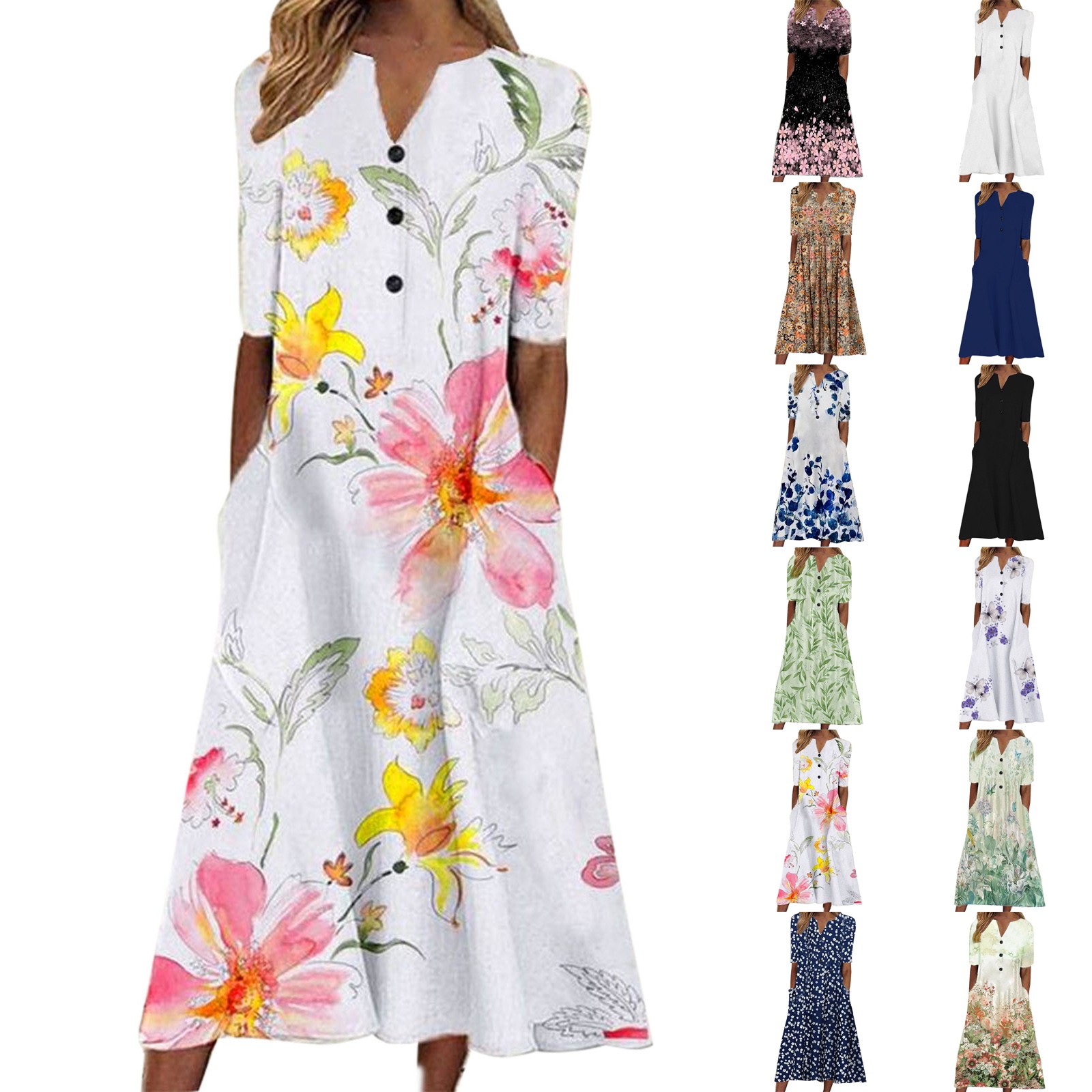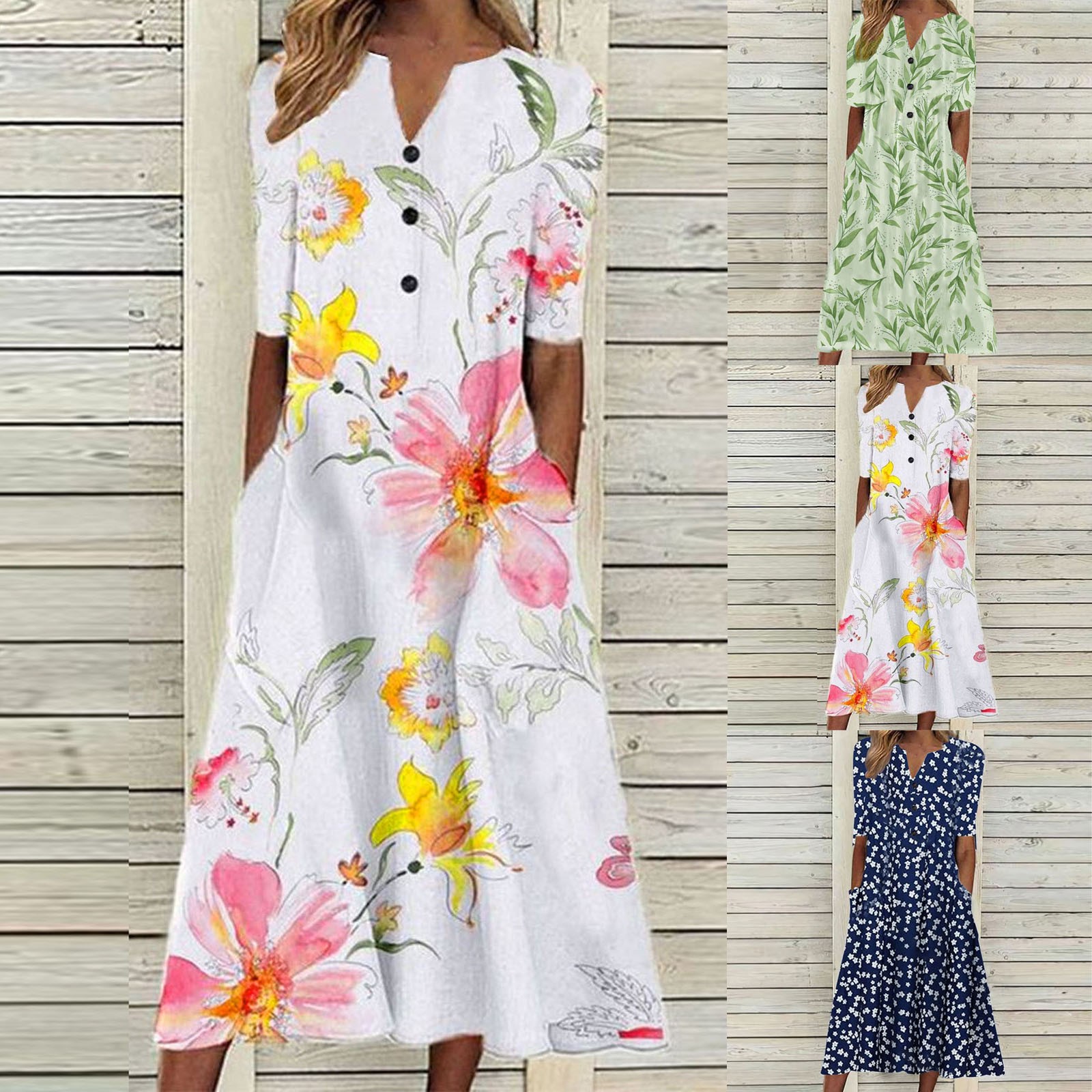 Летнее повседневное женское платье на пуговицах с коротким рукавом и цветочным принтом, вечерние платья миди с цветочным принтом Материал: полиэстер и спандекс, мягкий, удобный светильник, дышащая ткань высокого качества. Особенности: v-образный вырез, цветочный принт, платье миди, короткие рукава, элегантный и модный стиль. Дизайн: дизайн на пуговицах этого платья обеспечивает более комфортное и элегантное ощущение. Платье имеет обтекаемый дизайн, который идеально подходит вашей фигуре. Светильник, гладкий и удобный. Отличный вариант для летнего гардероба. Применение: это платье идеально подходит для свиданий, свадеб, дней рождения, коктейлей, вечеринок, клубов, ужинов, ночных поездок, пляжей, каникул, каникул и повседневной носки. Сочетание: идеально сочетается с ожерельем, сумочкой, каблуком или босоножками. Станьте сияющей звездой. Подарите это платье в качестве подарка/рождества для женщин, девушек, которым вы чувствуете себя счастливыми, благодарными, благодарными и благодарными. Сохраняйте моду, сохраняйте стиль. Красивая одежда никогда не пропустите. Мы стремимся предоставить больше вариантов женской одежды-модная, высококачественная, модная, красивая. Мы надеемся, что вы найдете эту привлекательную одежду, вы никогда не сможете оторваться от нее! Красота-это наше вечное стремление. Мы продолжаем улучшать и предоставлять высококачественные товары и продолжаем быструю итерацию. Давайте сохраним моду, сохраним стиль! Женские платья, повседневные платья, платья миди. На лето и весну. Хлопок и полиэстер. Мягкое высококачественное изделие удобно сидит. Практичный цвет никогда не устарел, вы можете носить его в течение многих лет. Высокая эластичная резинка на талии может быть скорректирована в соответствии с вашей линией талии для лучшей посадки. Модный и Повседневный стиль идеально подходит для любых неформальных случаев летом. Сексуальные и шикарные летние платья. Наслаждайтесь уличным видом и чувствуйте себя комфортно! Отлично подходит для повседневной носки/особых случаев/пляжа/вечерние и так далее. Вы получаете элегантное платье.
