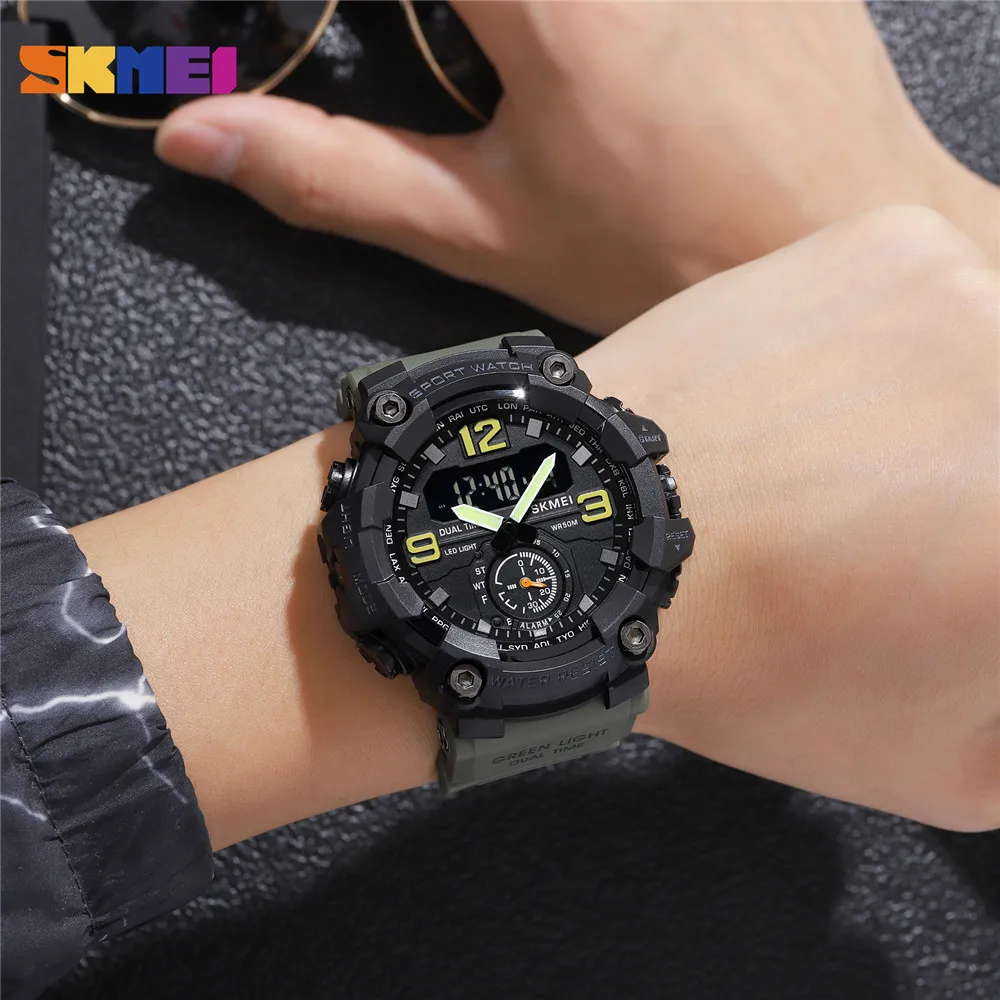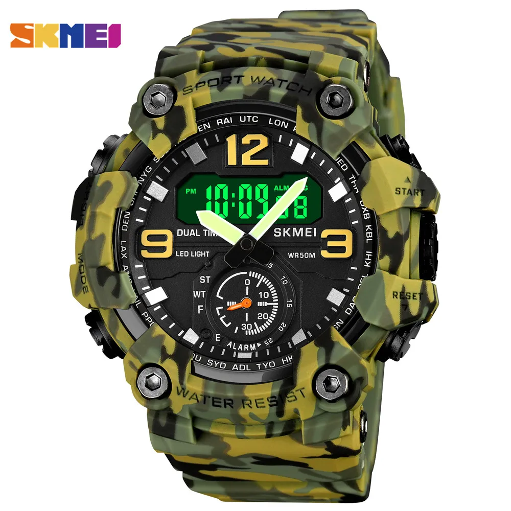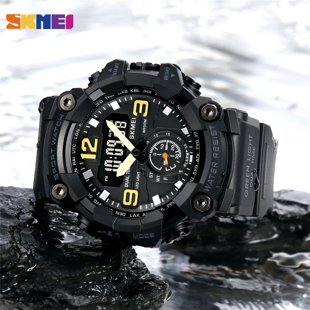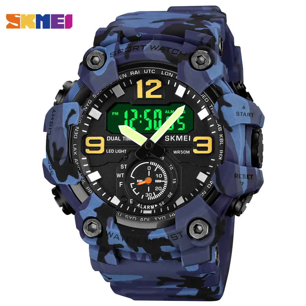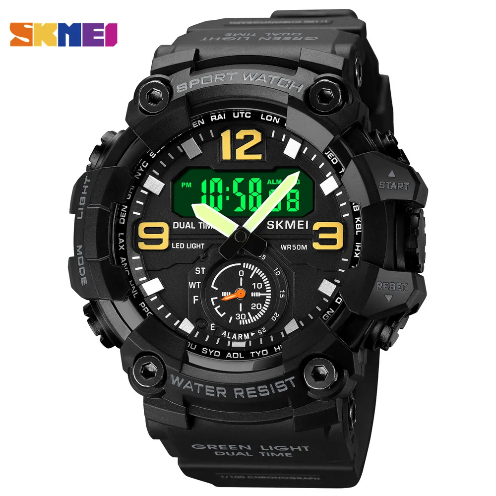 SKMEI Новинка 2 раза задний светильник мужские часы повседневные цифровые спортивные часы Секундомер Будильник водонепроницаемые кварцевые часы reloj hombre