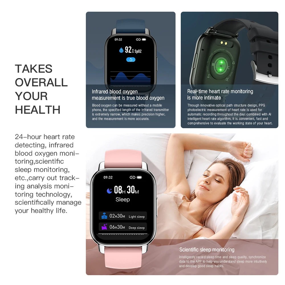 Для здоровья; Для занятий спортом: секундомер, шагомер, сна, частота сердечных сокращений, измерять кровяное давление, уровень кислорода в крови, напоминание о сидячем образе жизни, тренировка дыхания
