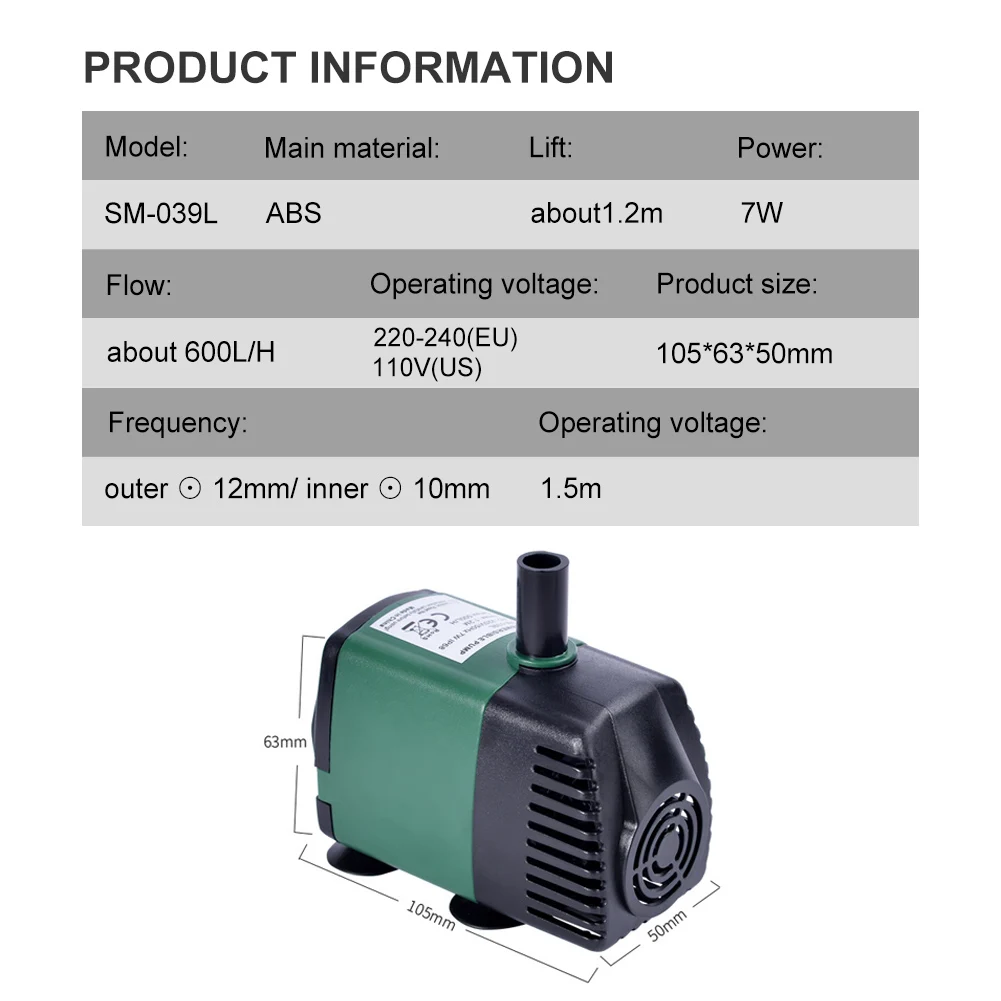 SM-039L 600л/ч 7 Вт погружной аквариумный циркулирующий водяной насос ультра-тихий пейзаж аквариум для рыб Пруд водяной фонтан насос