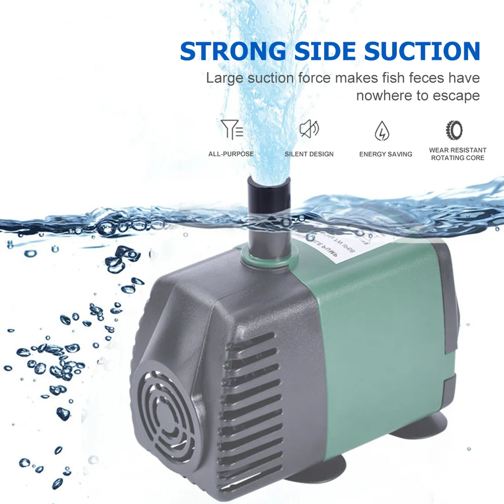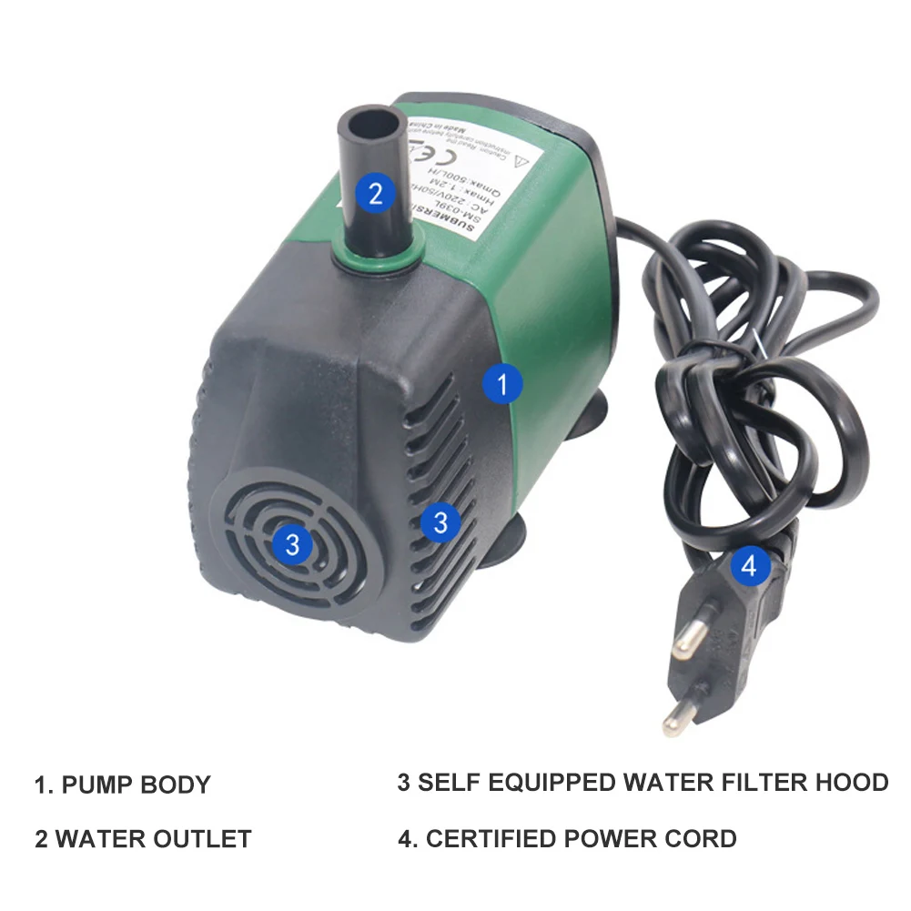 Погружной водяной насос подходит для пресной и соленой воды и может генерировать поток воды. Он очень подходит для аквариумов, дренажных канав, экологических бассейнов, разведенных прудов, ландшафтных домов, садов, различных ремесел, небольших фонтанов и т. д.