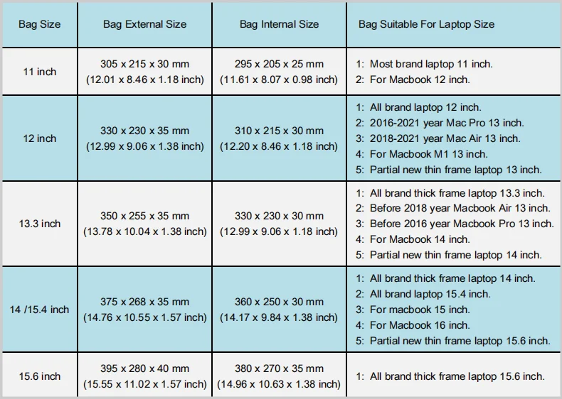 2: пожалуйста, не стесняйтесь связаться с нами, если вы не уверены, какой размер сумки подходит для вашего ноутбука.
