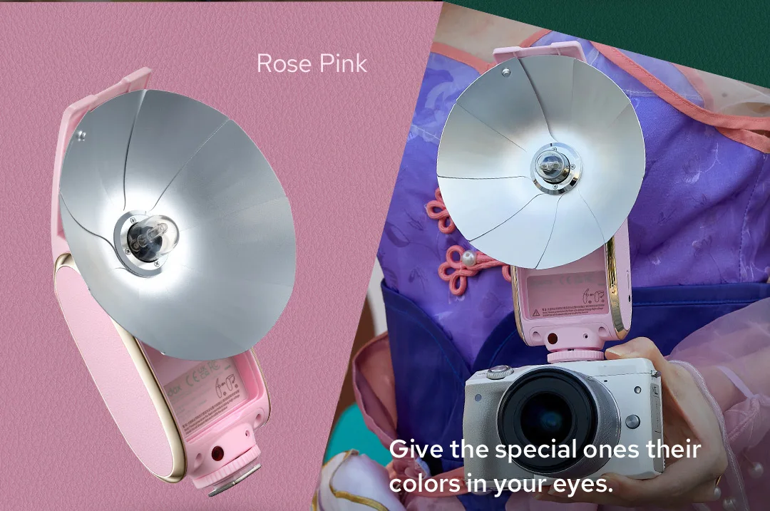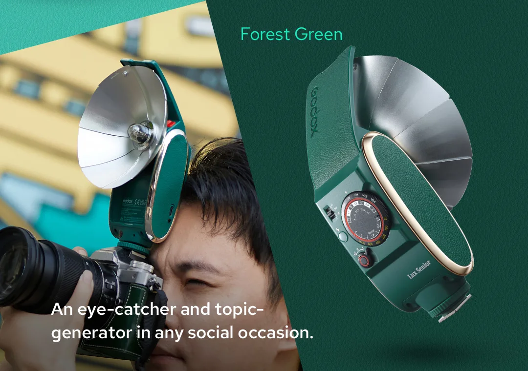 Ретро-стиль Lux Senior резонирует больше в использовании. Классический способ фотосъемки с серебристым отражателем типа вентилятора формирует светильник, а лампа-вспышка, сочетающая винтажную форму с новой технологией.