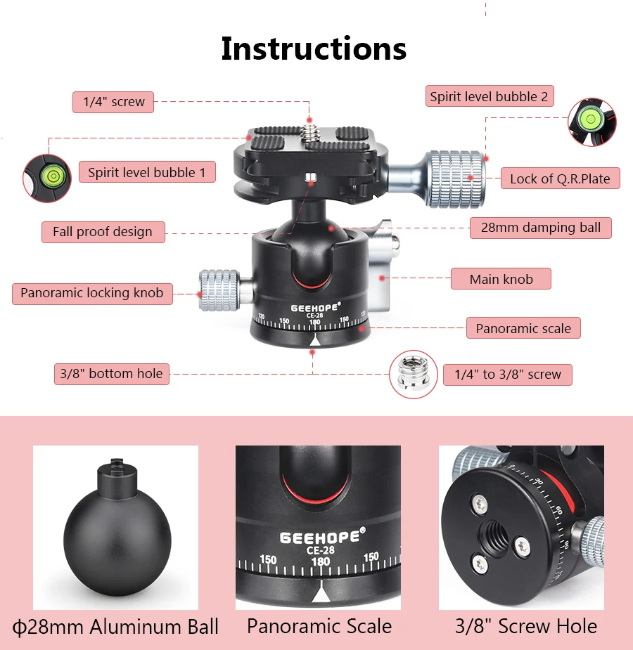 🔶Гарантия и посылка👍2 года гарантии на нашу продукцию. Есть CE-28 шаровая Головка, шаровая Головка, винт 1/4 "до 3/8" и шестигранный ключ в посылка.