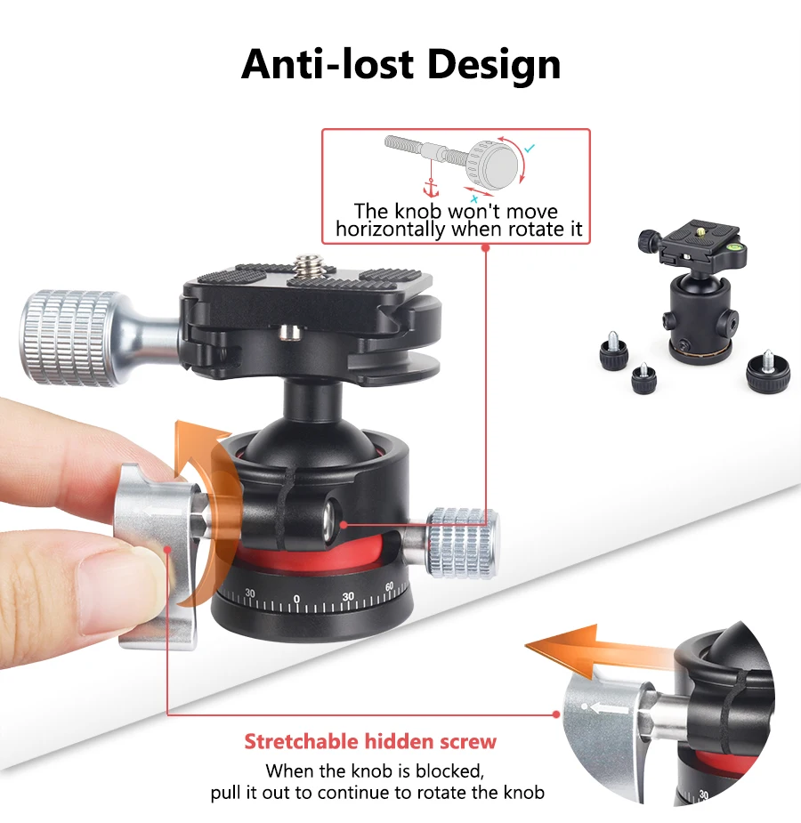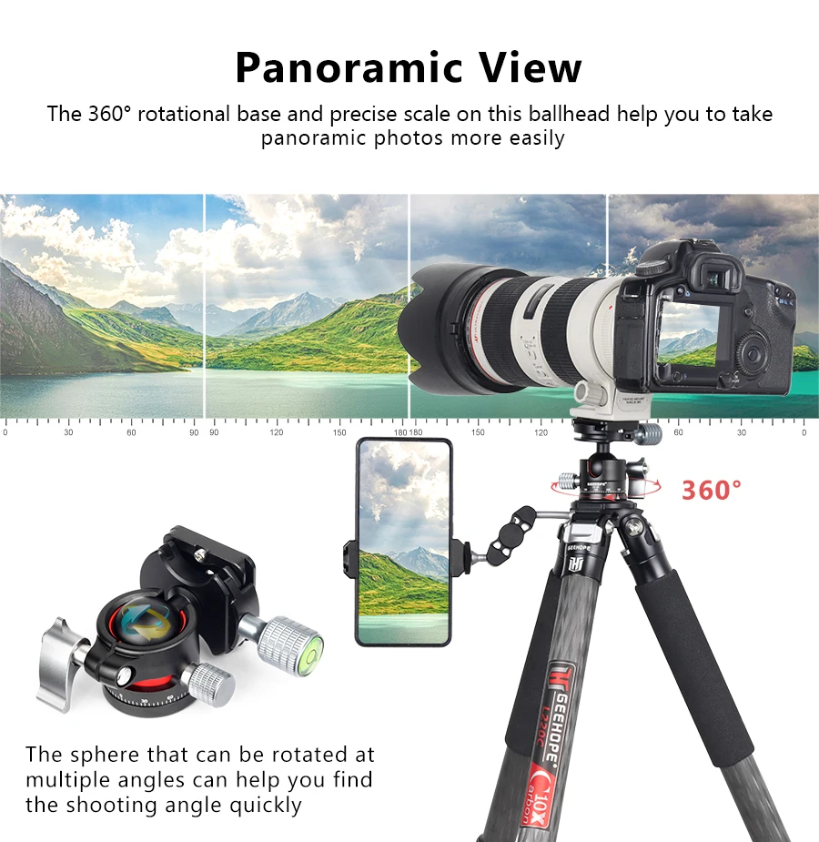 🔶Широкоугольное вращение👍С панорамным основанием 360 ° и точной шкалой, он может делать панорамные фотографии более легко. Сфера, которая может поворачиваться под разными углами, что помогает быстро найти угол съемки.