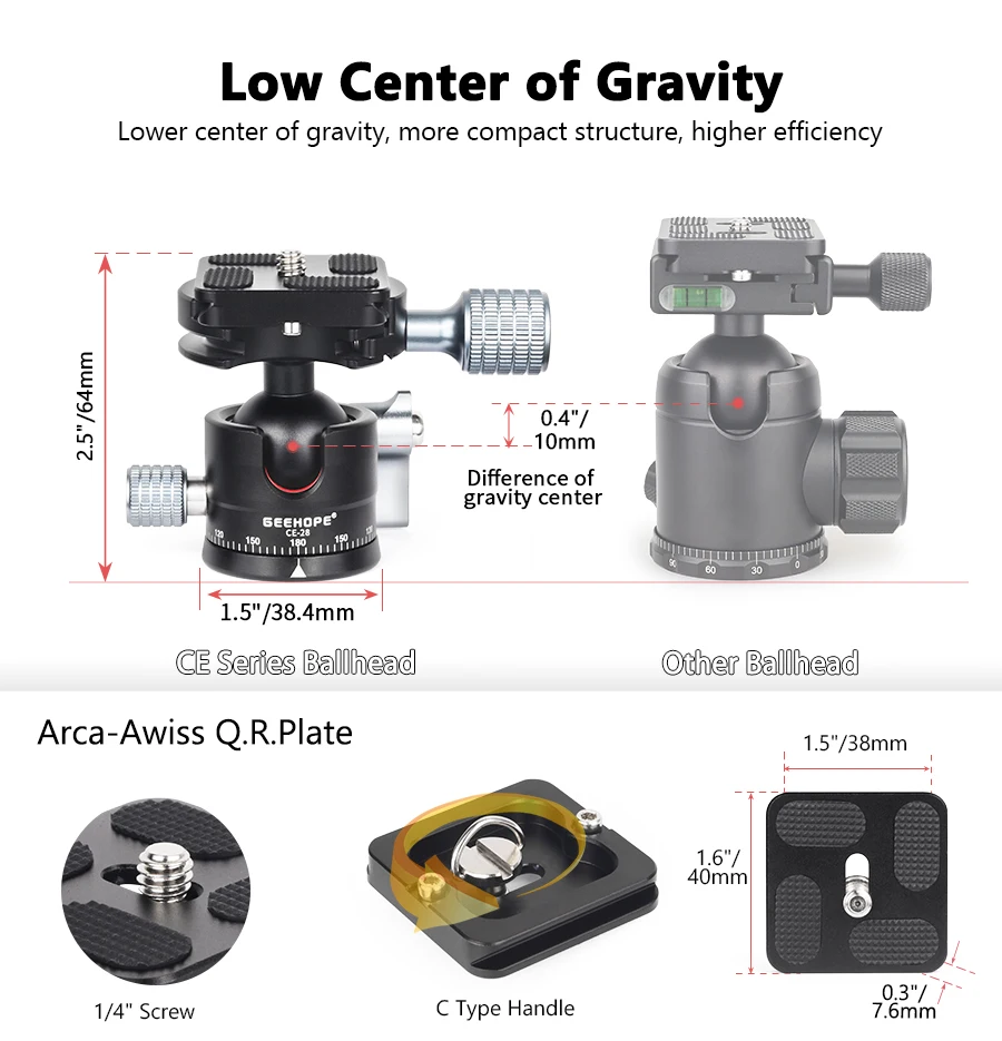 🔶Широкое применение👍С крепежным винтом 1/4 ", он может зафиксировать различные камеры и видеокамеры; С отверстием 3/8" на дне, он совместим с большинством штативов, моноподов, направляющих и т. д. Кроме того, есть винт 1/4 "до 3/8" в подарок.