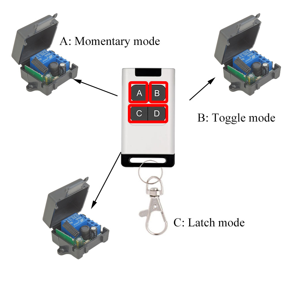 Да, конечно. Вы можете использовать пульт дистанционного управления 4 приемниками полностью в режиме переключения или режиме memontary.(A-1,B-2,C-3,D-4)