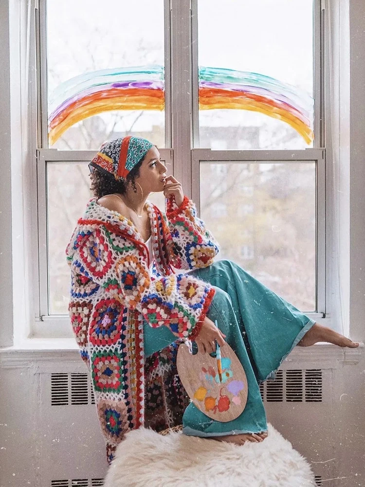 Один размер: длина 118 см, плечо 60 см, рукав 55 см, обхват груди 114 см